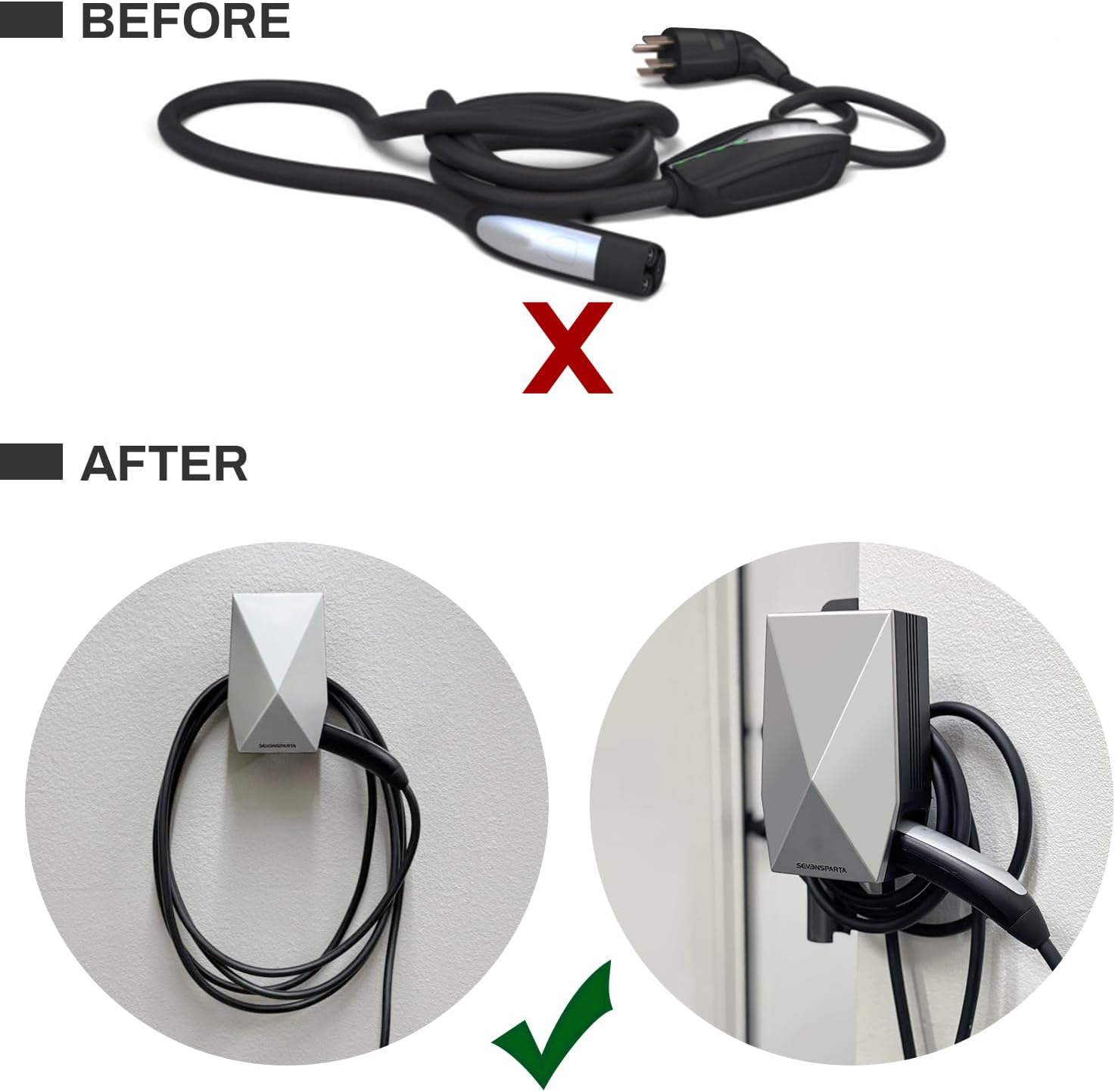 - PRACTICAL & DURABLE: The charging cable holder keeps your cables clean and organized. With an upgraded design featuring 4 metal screws instead of 2, it ensures greater stability and sturdiness for your wall charger holder.