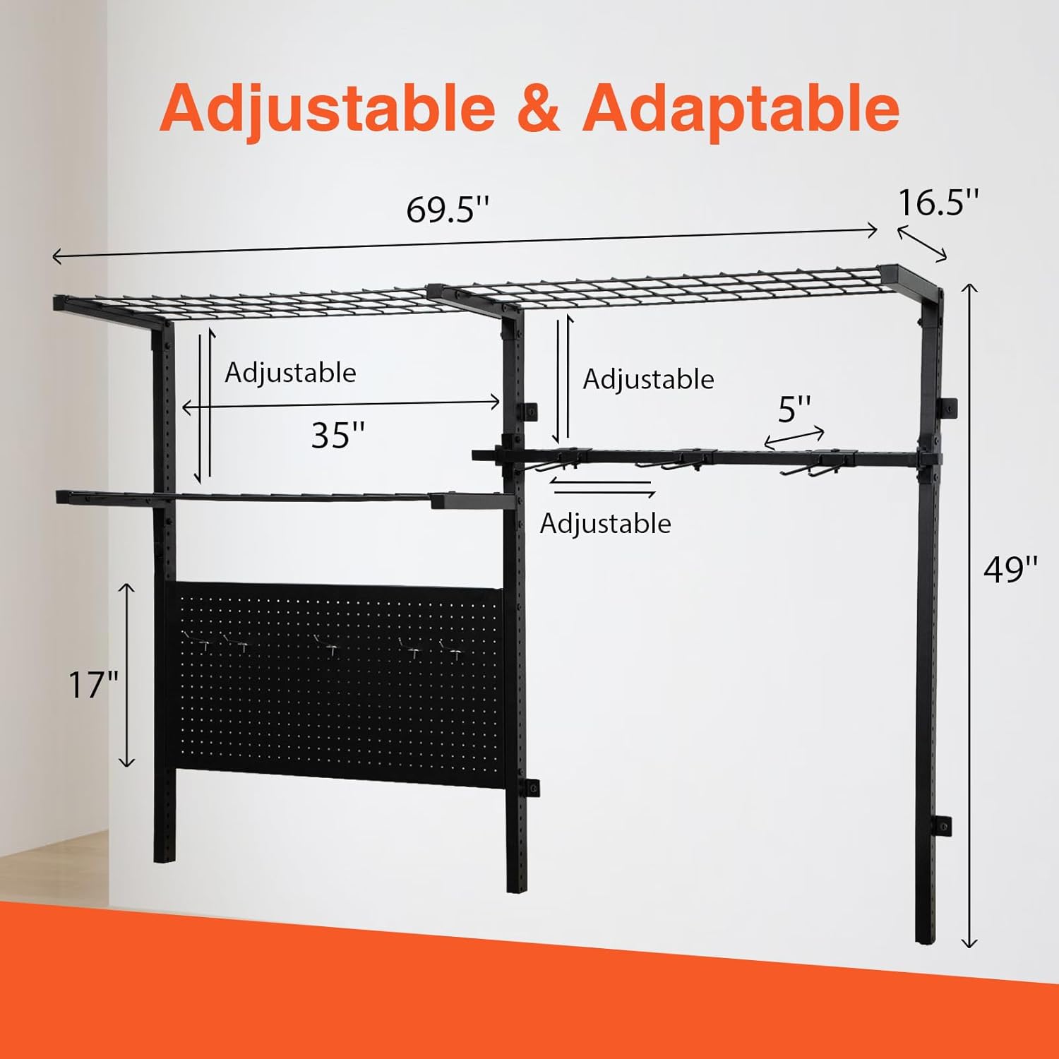 Garage Shelf Wall Mounted with Pegboard Heavy Duty Garage Wall Shelving with Garden Tool Rack and Hooks Garage Tool Organizer for Home Garden Yard Organization and Storage Holds 500lbs