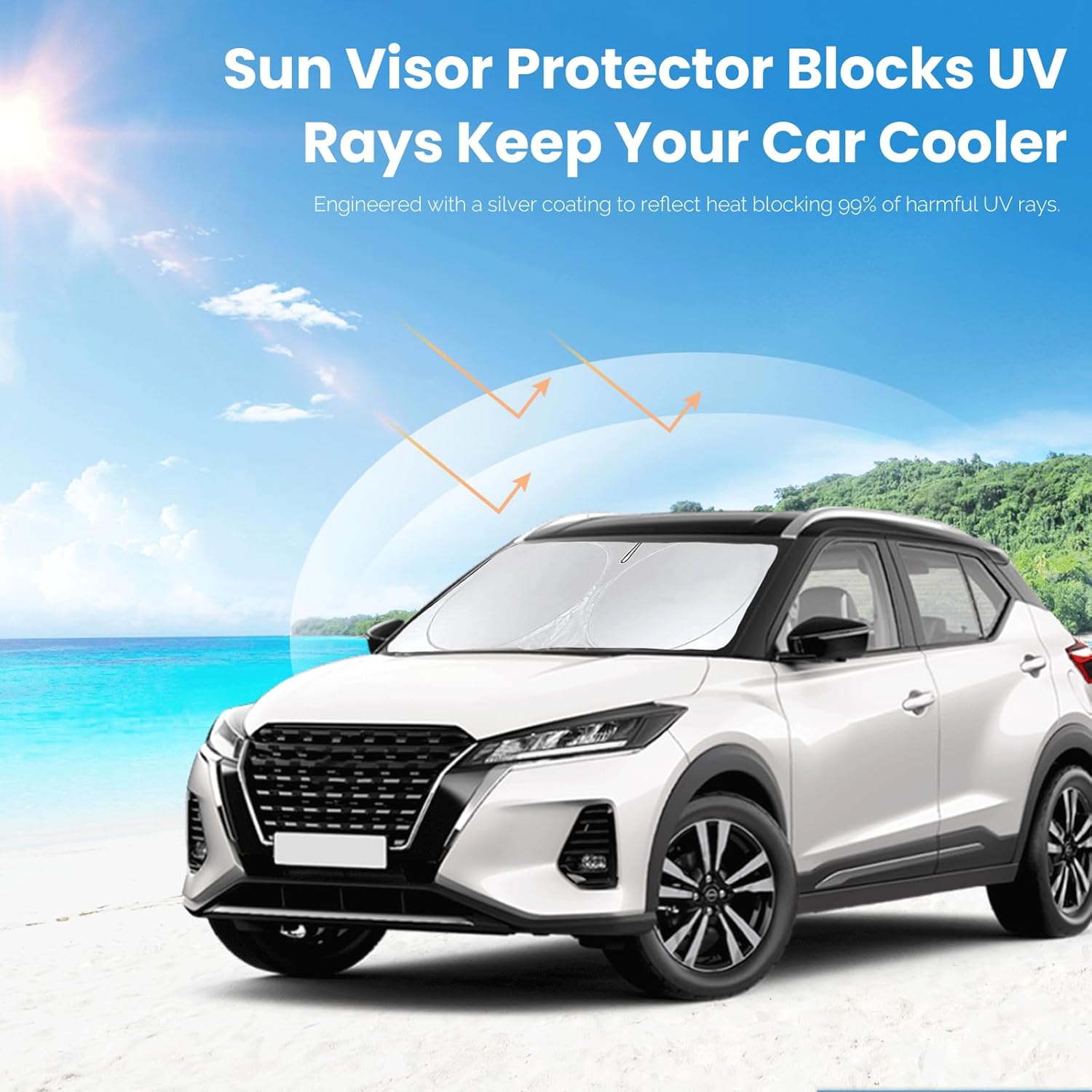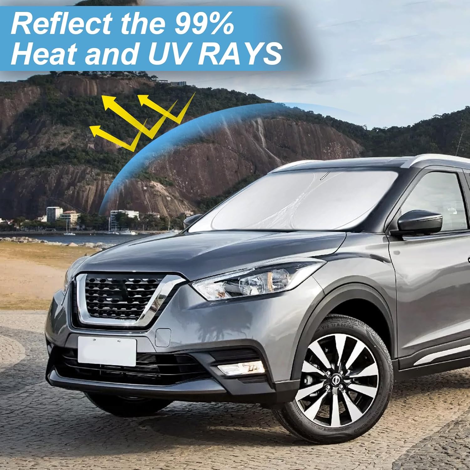 - [CUSTOM-FIT FRONT WINDSHIELD SUNSHADE] Automotive windshield sun shade is Specifically designed,which for Kicks SUV 2017 2018 2019 2020 2021 2022 2023 2024 Windshield accessories. We have several size of car sunshade. Please measure your car size and refer to our size before your purchase. Once installed it won't have gaps, sags or slumps like other car sun shade windshield