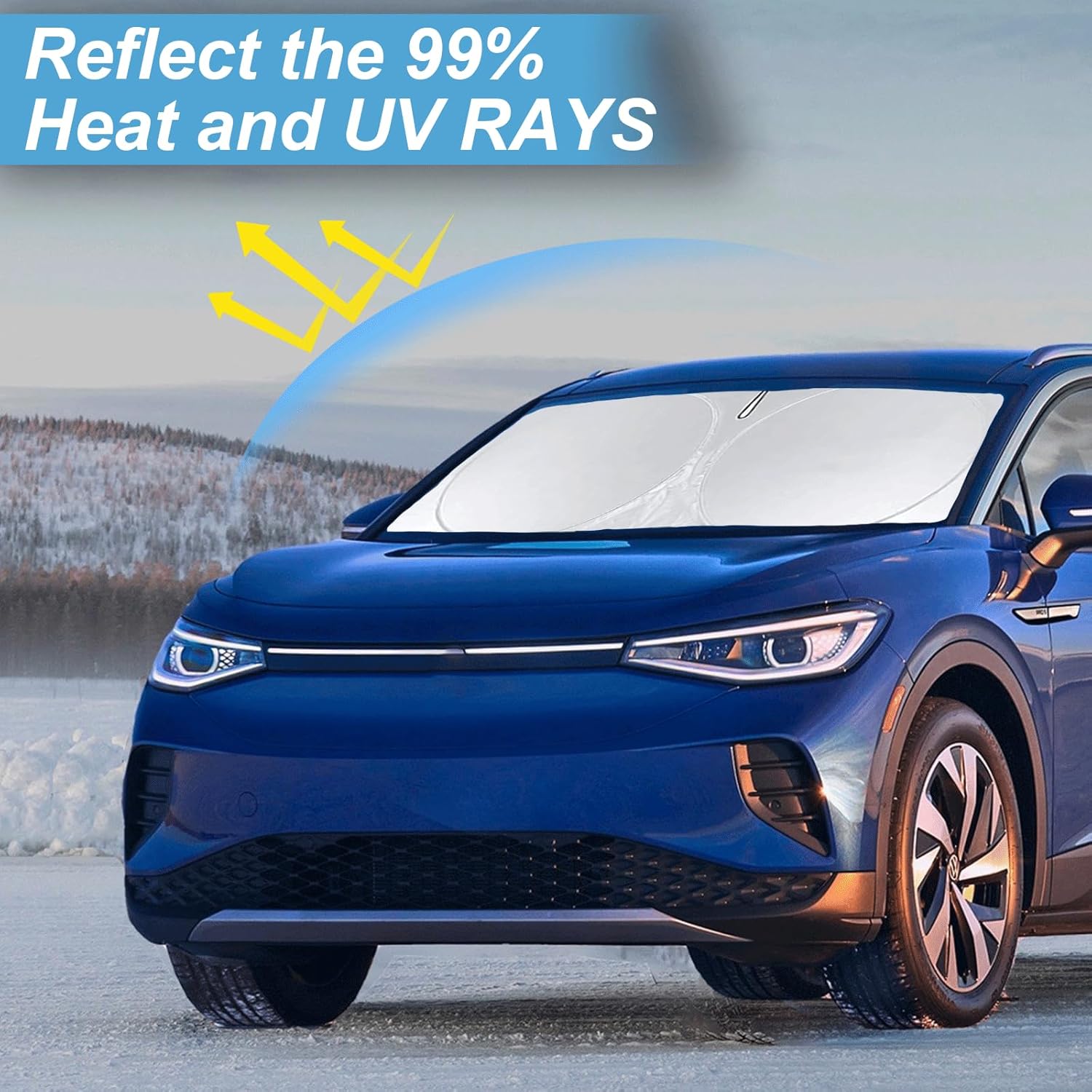 - [CUSTOM-FIT FRONT WINDSHIELD SUNSHADE] Automotive windshield sun shade is Specifically designed,which for 2021-2022 2023 2024 2025 VW ID.4 for Volkswagen accessories. We have several size of car sunshade. Please measure your car size and refer to our size before your purchase. Once installed it won't have gaps, sags or slumps like other car sun shade windshield