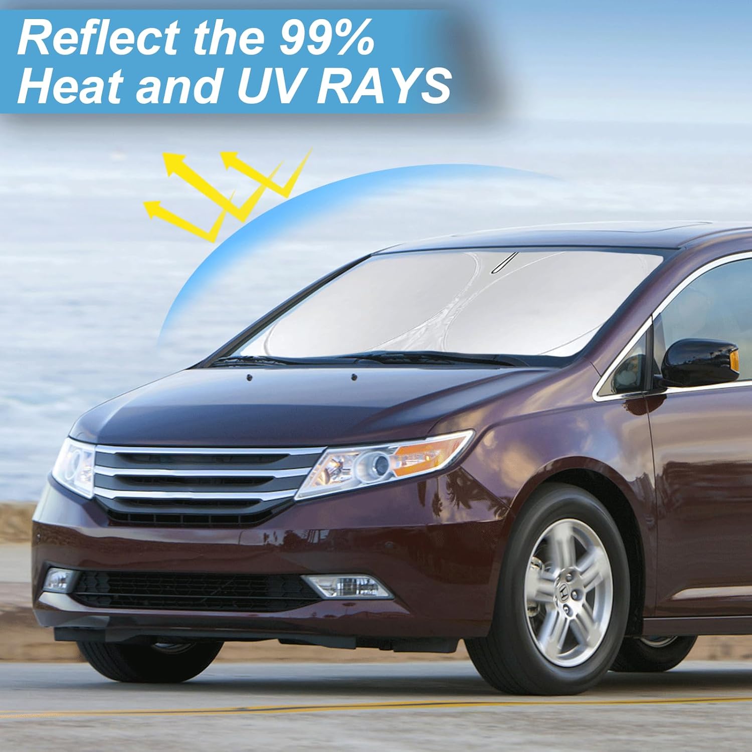 - [CUSTOM-FIT FRONT WINDSHIELD SUNSHADE] Automotive windshield sun shade is Specifically designed,which for 2011-2016 2017 Honda Odyssey LX EX EX-L Touring accessories. We have several size of car sunshade. Please measure your car size and refer to our size before your purchase. Once installed it won't have gaps, sags or slumps like other car sun shade windshield