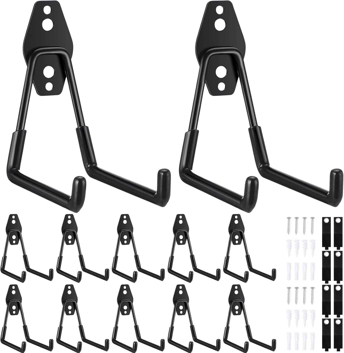 - Sufficient Quantity: our package includes 12 utility steel garage storage hooks and 8 extension cord organizer straps, providing all-around organization for your garage; Sufficient quantity can meet your daily use and replacement demands