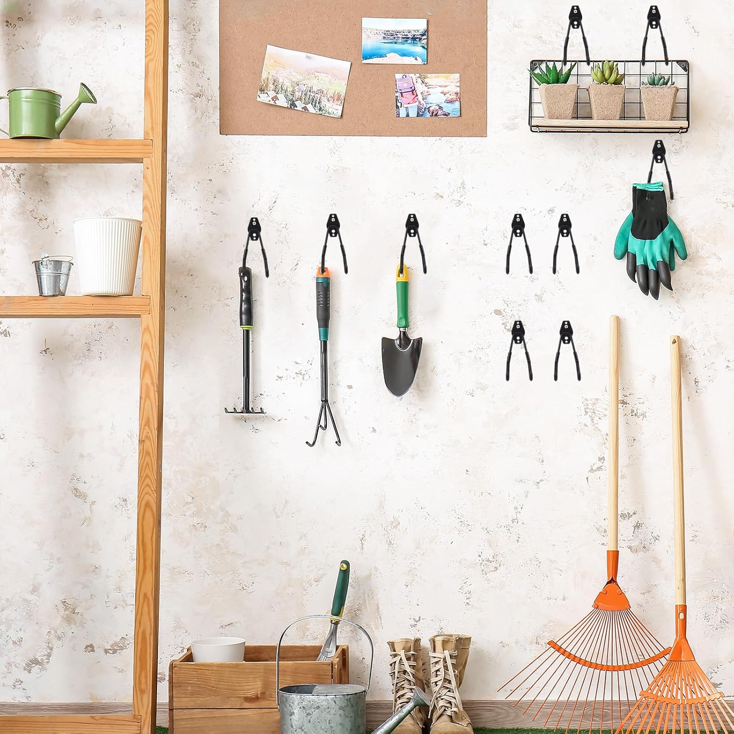 - Wide Range of Usages: compared with the single hook, our garden tool hooks have 2 holes, which can easily support the weight and can hang most items; Applicable to scenes such as kitchens, garages, warehouses, offices, say goodbye to clutter and welcome a more organized work space