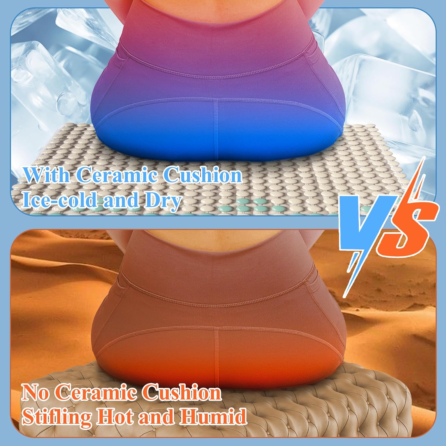 - 🍀【Cooling in One Second】🍀The infrared emissivity of ceramic materials is very high, more than 16 times higher than the infrared emissivity of metals such as aluminum and copper. This high emissivity allows ceramic materials to dissipate heat quickly by radiation, resulting cooling in one second,keeps you comfortably cool even after extended sitting.This makes our heat-resistant seat pad ideal for hot climates or those prone to sweating.