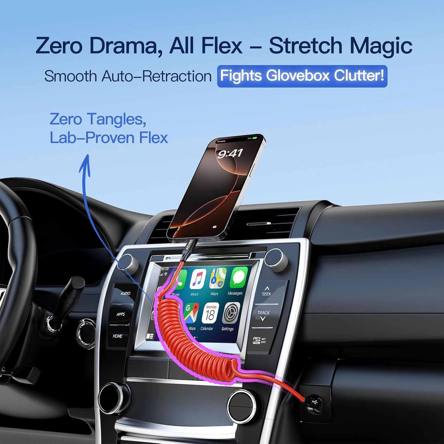 - 🌟[Universal Compatibility + 24-Month Peace of Mind] Compatible with iPhone iPhone 15/16 series, CarPlay-optimized with anti-interference tech to banish "ghost disconnections"(USB-C Carplay port). Backed by a 24-month warranty and US-based support - if it ever fails, we'll rush a replacement, no forms needed. Pinky promise! Tired of CarPlay Ghost Disconnections? Snag This Anti-Tangle Hero🔋