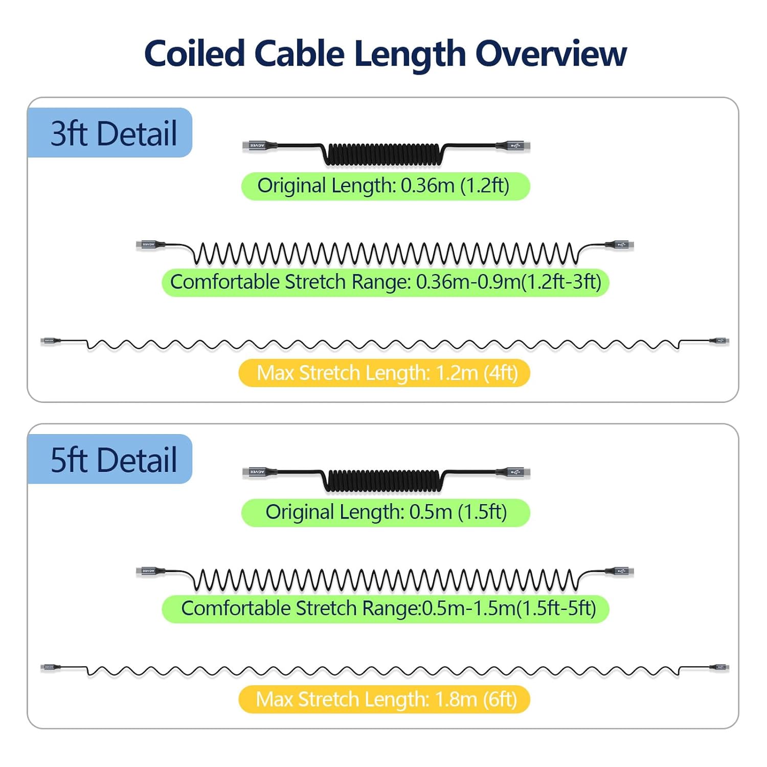 - 🚗[Tame Your Car's Cable Jungle] No more wrestling with spaghetti cords! Our coiled design stretches from short to long, perfect for tight car spaces, then snaps back neatly like a slinky. Keep your cup holders free for coffee, not tangled chaos! Soft and elastic: No more wrestling with stiff, frozen-spaghetti-like cables in winter; Squishy as a pacifier, coils like a zen master.
