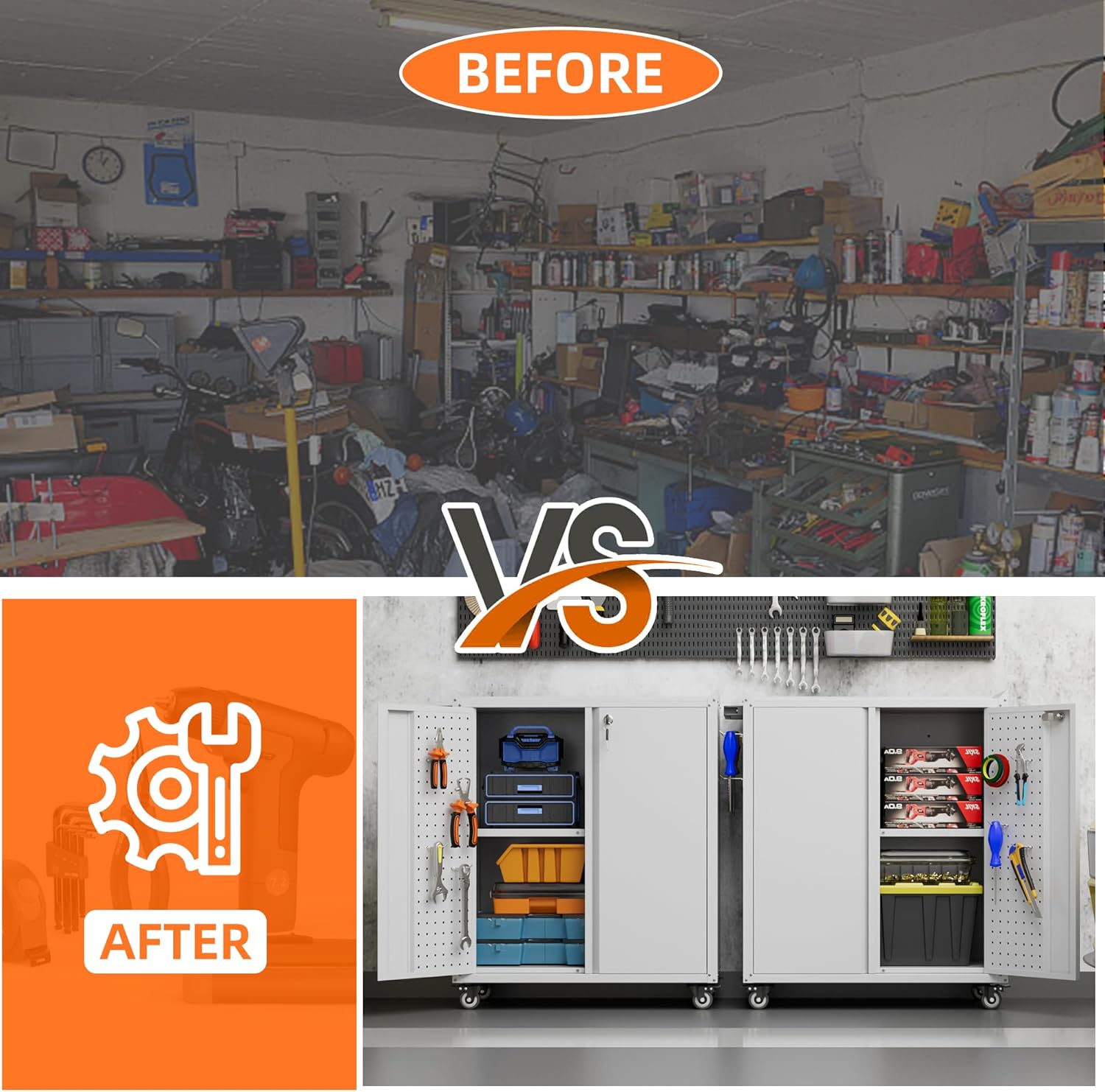 - Secure Privacy Lockable System: This garage storage cabinet has lockable doors with 2 keys, which will keep all your belongings secured in the cabinets. Benefit from a second key, which can be used by co-owners or as a backup in case of loss;