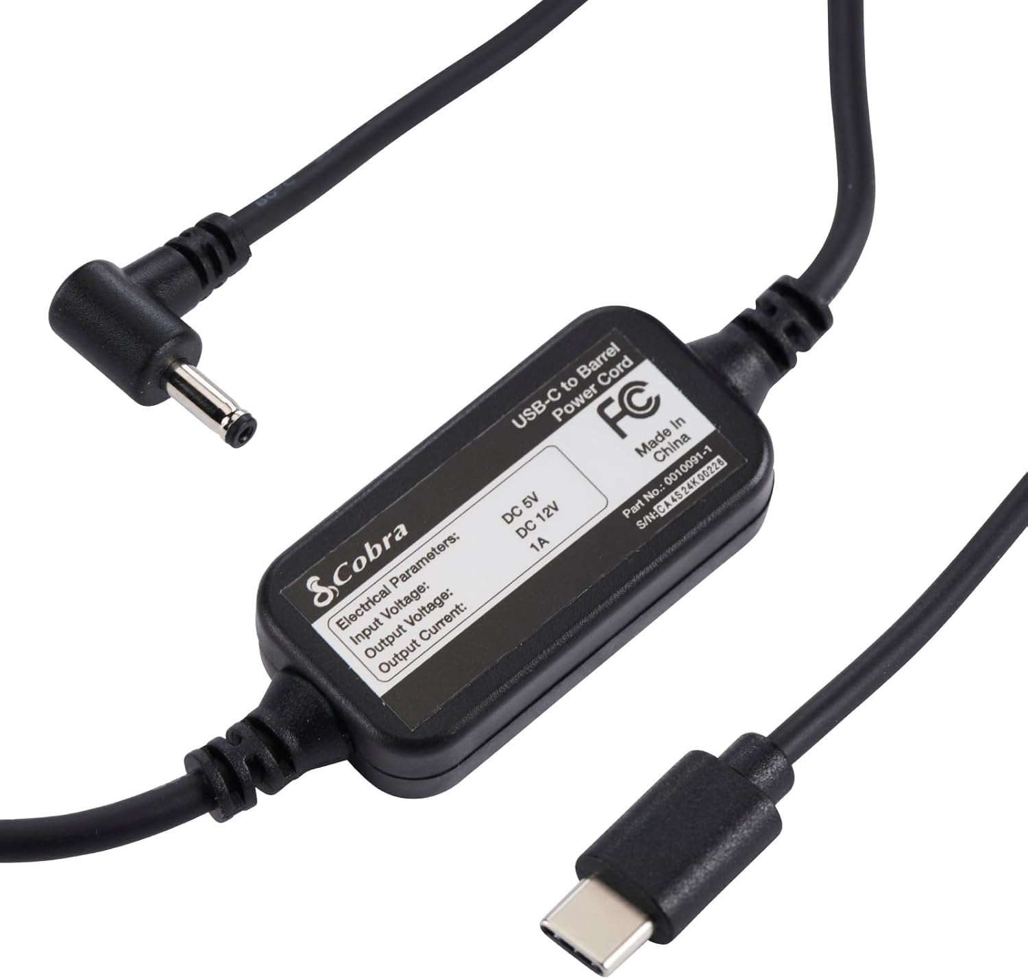 Cobra USB-C to Barrel Connector Radar Detector Power Cable Radar Detectors, Compatible RAD350 380 450 480i 700i and Suitable for Radar Detector Windshield Mount