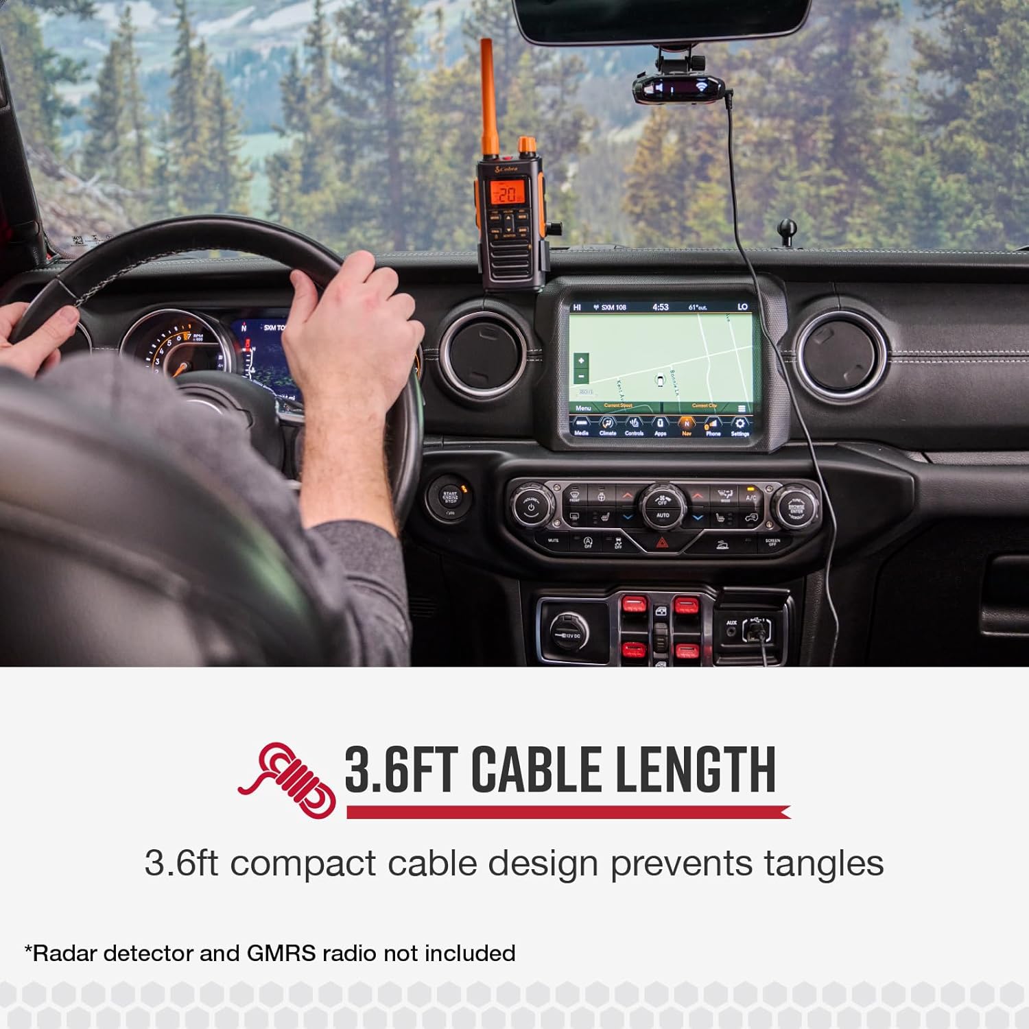 - Compact Cable Design: 3.6ft length radar detector power cord prevents tangles and cleans up installation for radar detector mirror mount or windshield mount flexibility