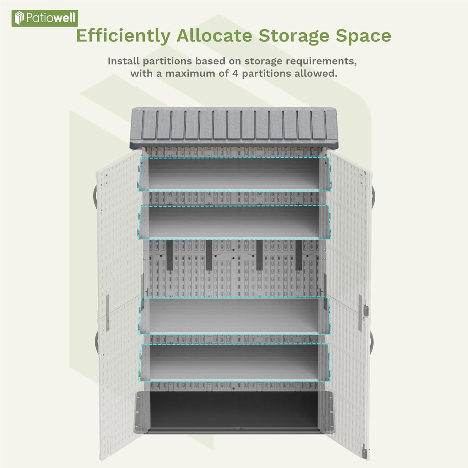 - Reinforced Construction: Featuring double-layer panels and advanced blow-molding technology, the cabinet delivers exceptional strength and durability. Its rugged design supports heavier items, while optional shelves (sold separately) enable effortless organization for tools, bins, or bulky equipment.