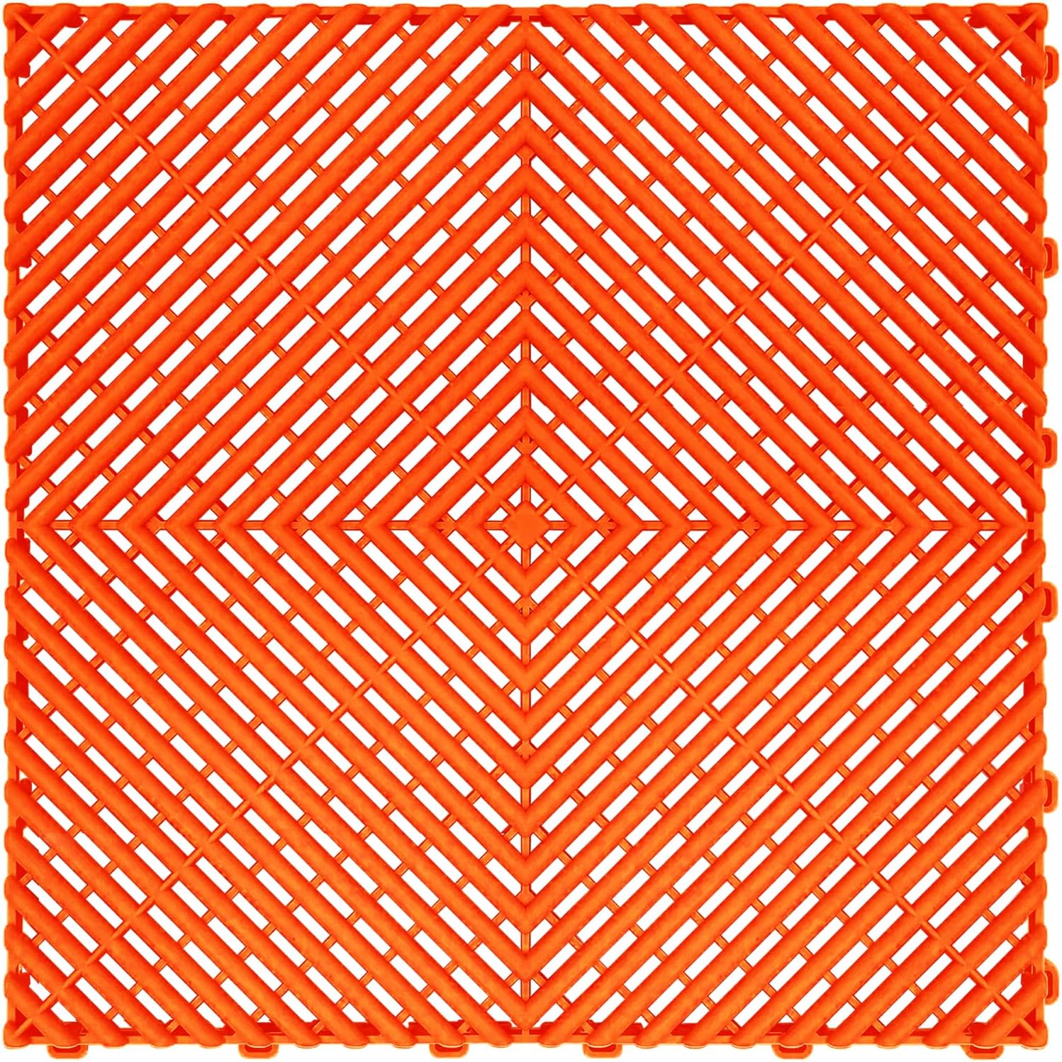 15.7"x15.7" Garage Flooring Tiles, Non-Slip Interlocking Plastic Garage Floor Mat, Garage Organization & Garage Storage, Vented Pattern (Orange, 25PCS)