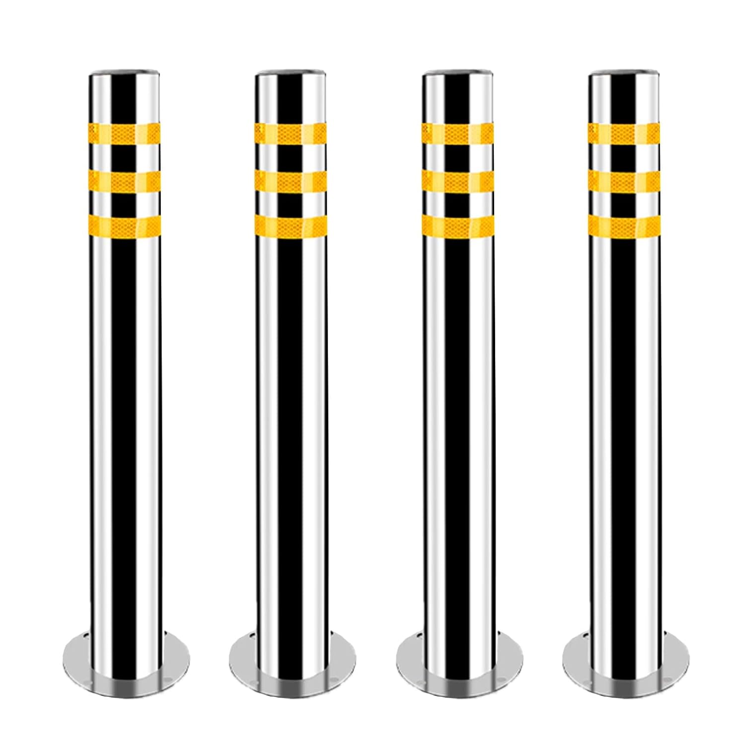Stainless Steel Parking Bollards for Driveway, Industrial Safety Bollards Reflective Channelizer Post, Parking Barrier, Sturdy and Durable, Easy to Install, for Crowd Control(Silver (4pcs),8.9*60cm/3.