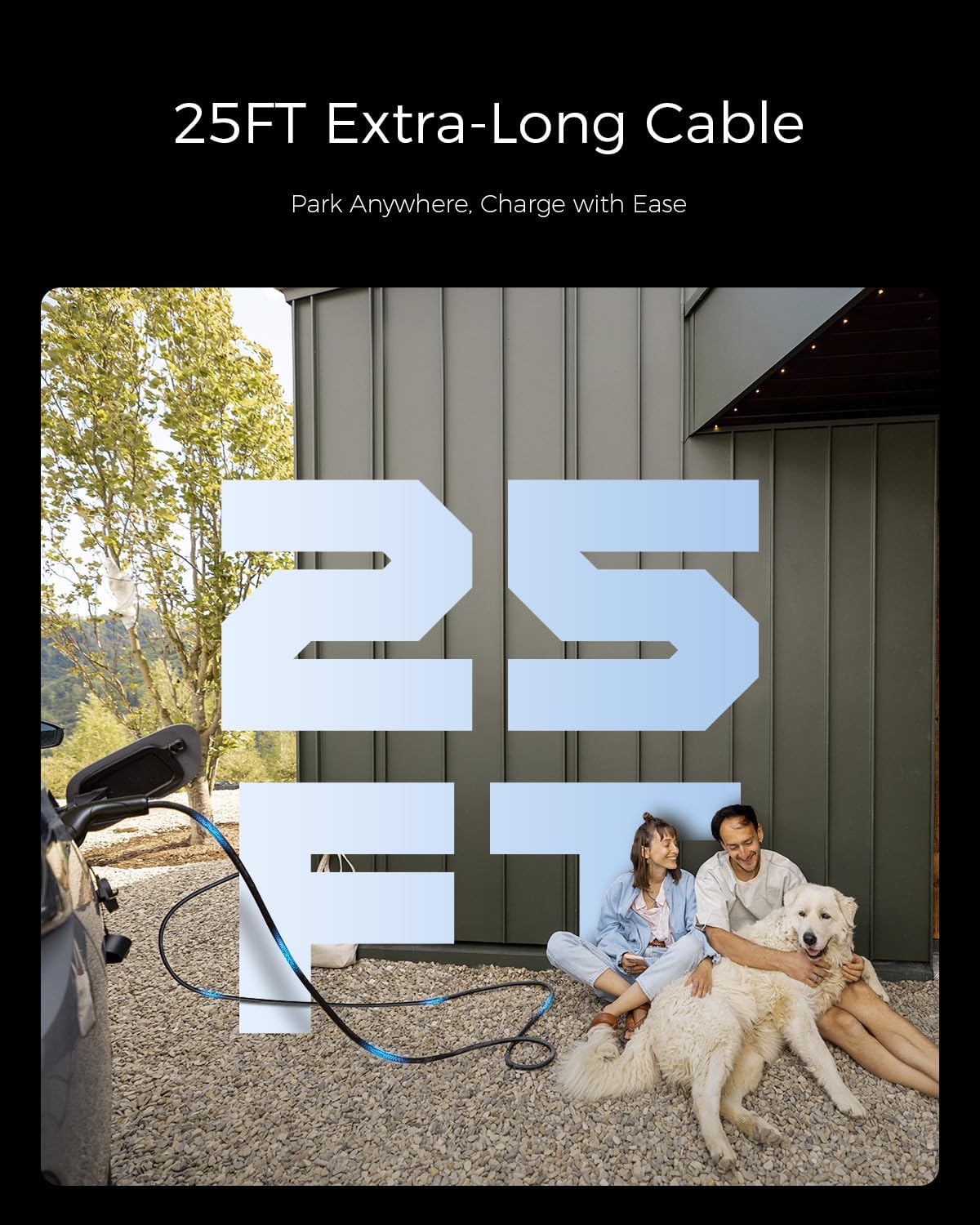 - 【Extended 25FT Cable Length】Equipped with an impressive 25-foot cable, you can effortlessly charge your electric vehicle (EV) at home or through public charging stations.