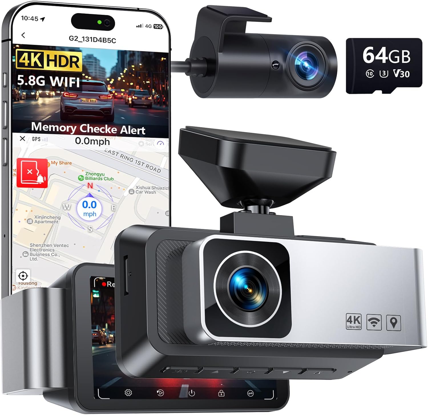 - Included Components : 1x 64GB Memory Card, 1x Car power adapter(11.5ft Cable), 1x G2 DUAL Dash Cam, 1x Rear Cam(21.3ft Cable), 1x High-Tack Double-Sided Tape, 1x Dust-Free Cloth, 1x User Manual, 1x Quick Install Manual, 5x Cable Clips, 1x Mount Tool, 3x Electrostatic Films 1x 64GB Memory Card, 1x Car power adapter(11.5ft Cable), 1x G2 DUAL Dash Cam, 1x Rear Cam(21.3ft Cable), 1x High-Tack Double-Sided Tape, 1x Dust-Free Cloth, 1x User Manual, 1x Quick Install Manual, 5x Cable Clips,… See more