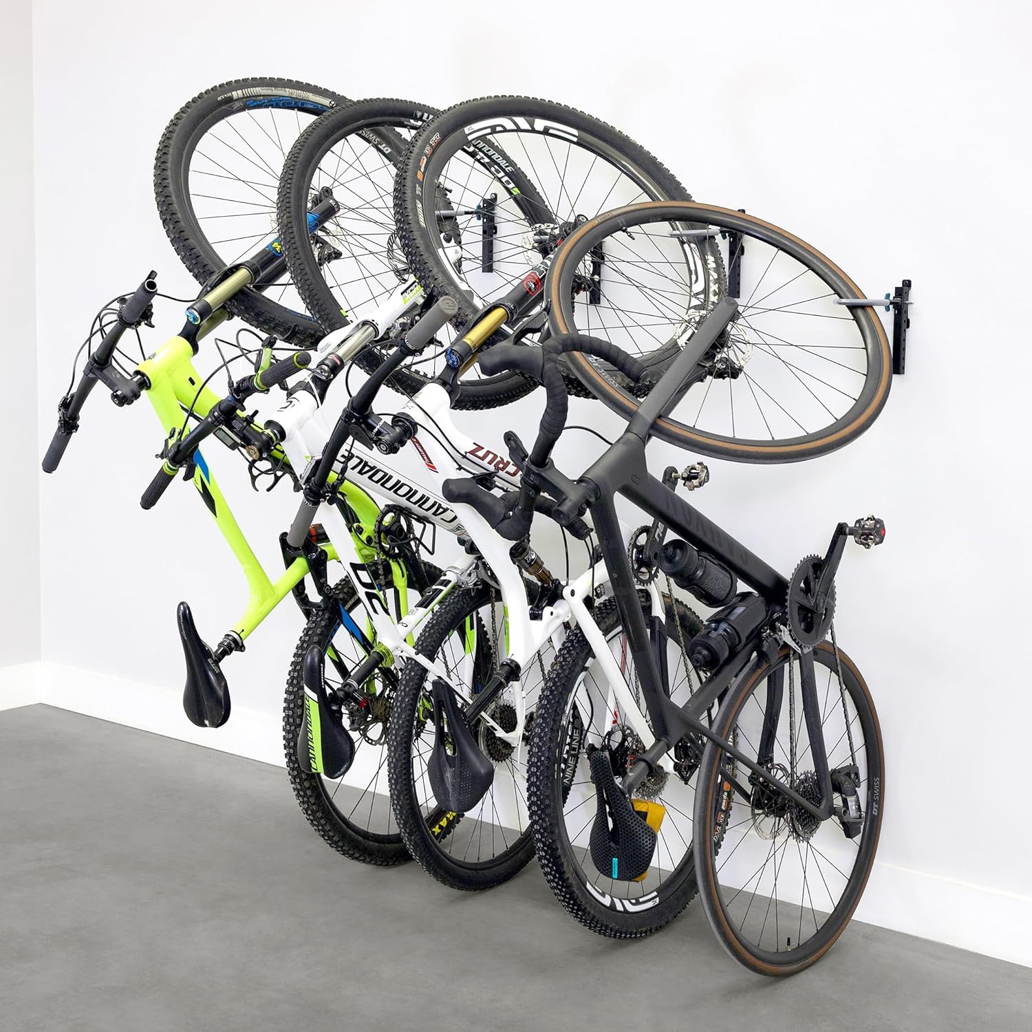 - Wall Mounted Bike Hanger: Hang your bicycle in your garage, home, or apartment with the WheelRest. This vertical bike hook holds all types of bikes with tires up to 3" wide and weighing up to 75 lbs per hook, including road, mountain, kids’, and ebikes.