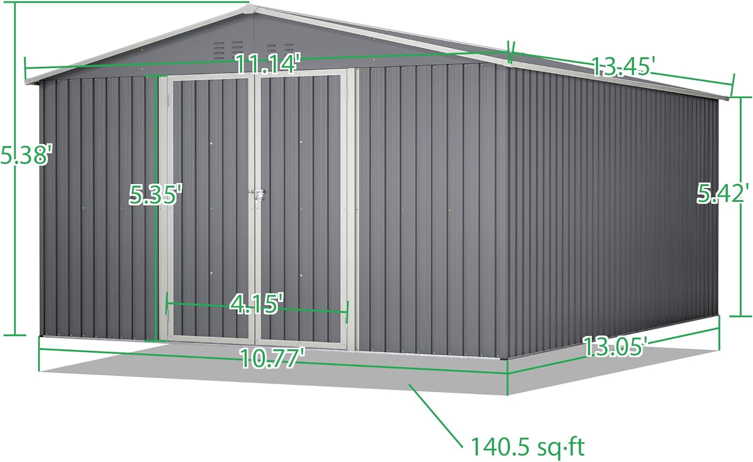 11x13ft Outdoor Metal Storage Shed,Steel Utility Tool Shed Storage House with Double Lockable Doors & Air Vent for Backyard Garden Patio Lawn Gray