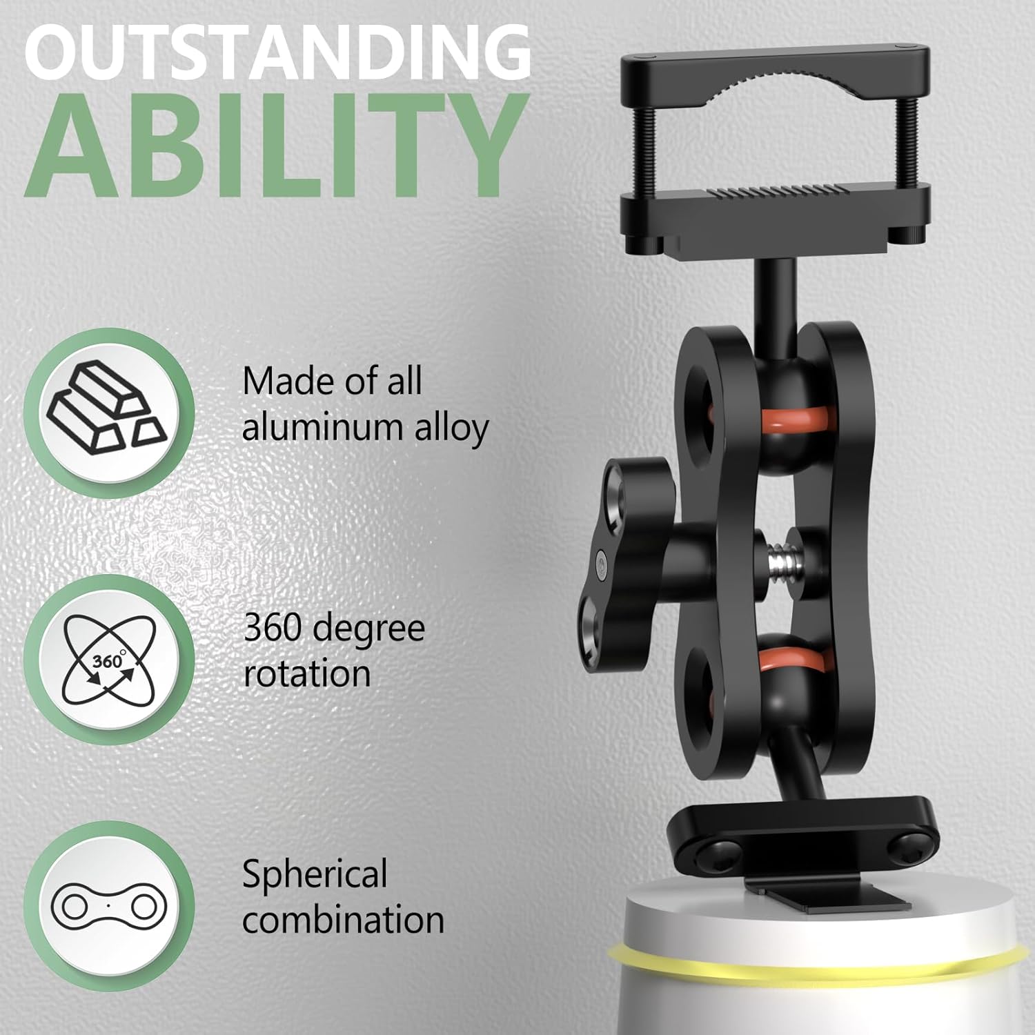 - Aluminum rearview mirror bracket has strong expandability, with two 1/4 screw holes at the handle that can be used to expand other devices.360 ° rotating ball head design, flexible adjustment, ensuring the best viewing angle while driving.