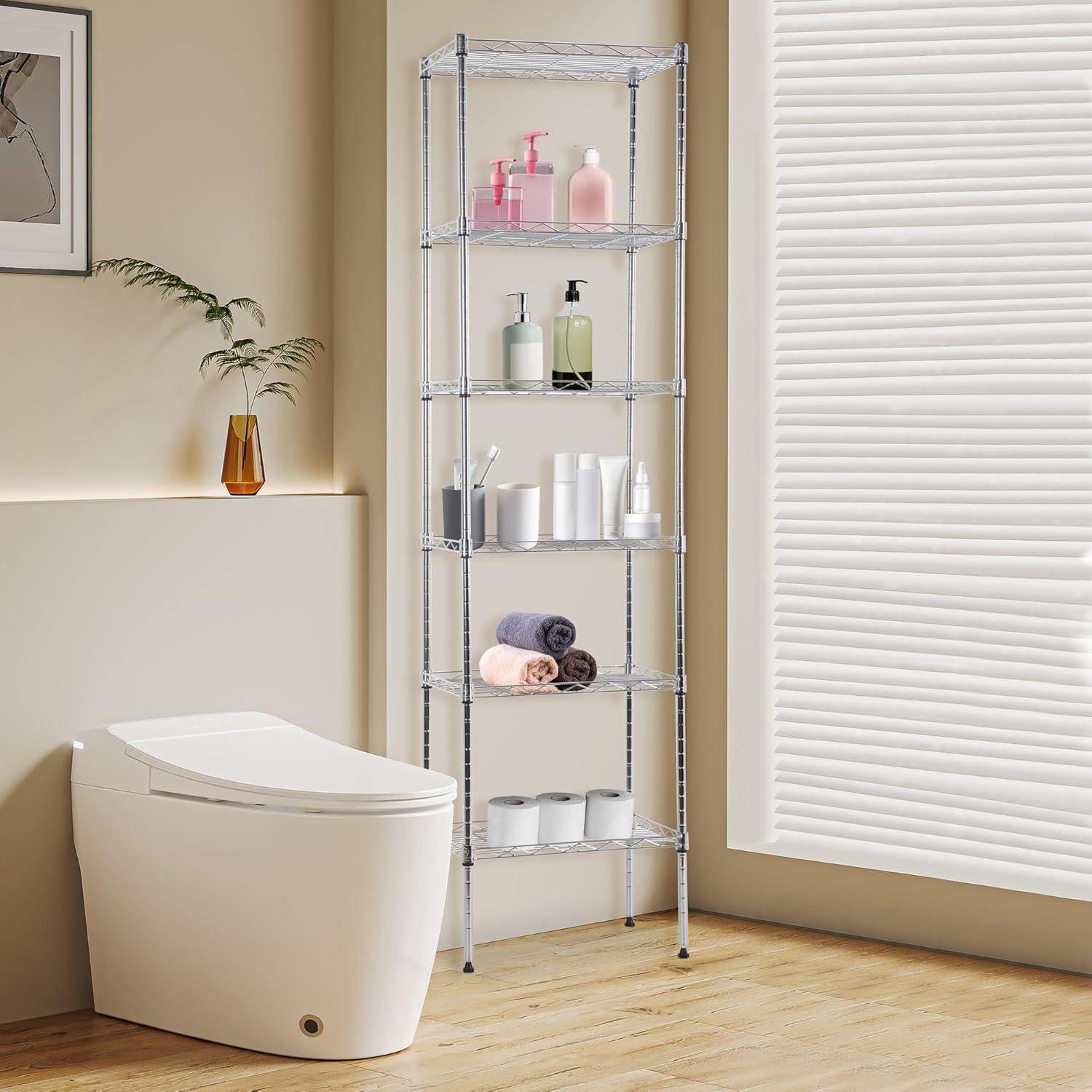 BestOffice Metal Garage Shelving 6 Tiers Garage Storage Shelves Heavy Duty 17”D x 12”W x 64”H Easy Assemble Wire Shelving NSF Certified Storage Shelves with Levling Feet for Home Garage Office, Chrome