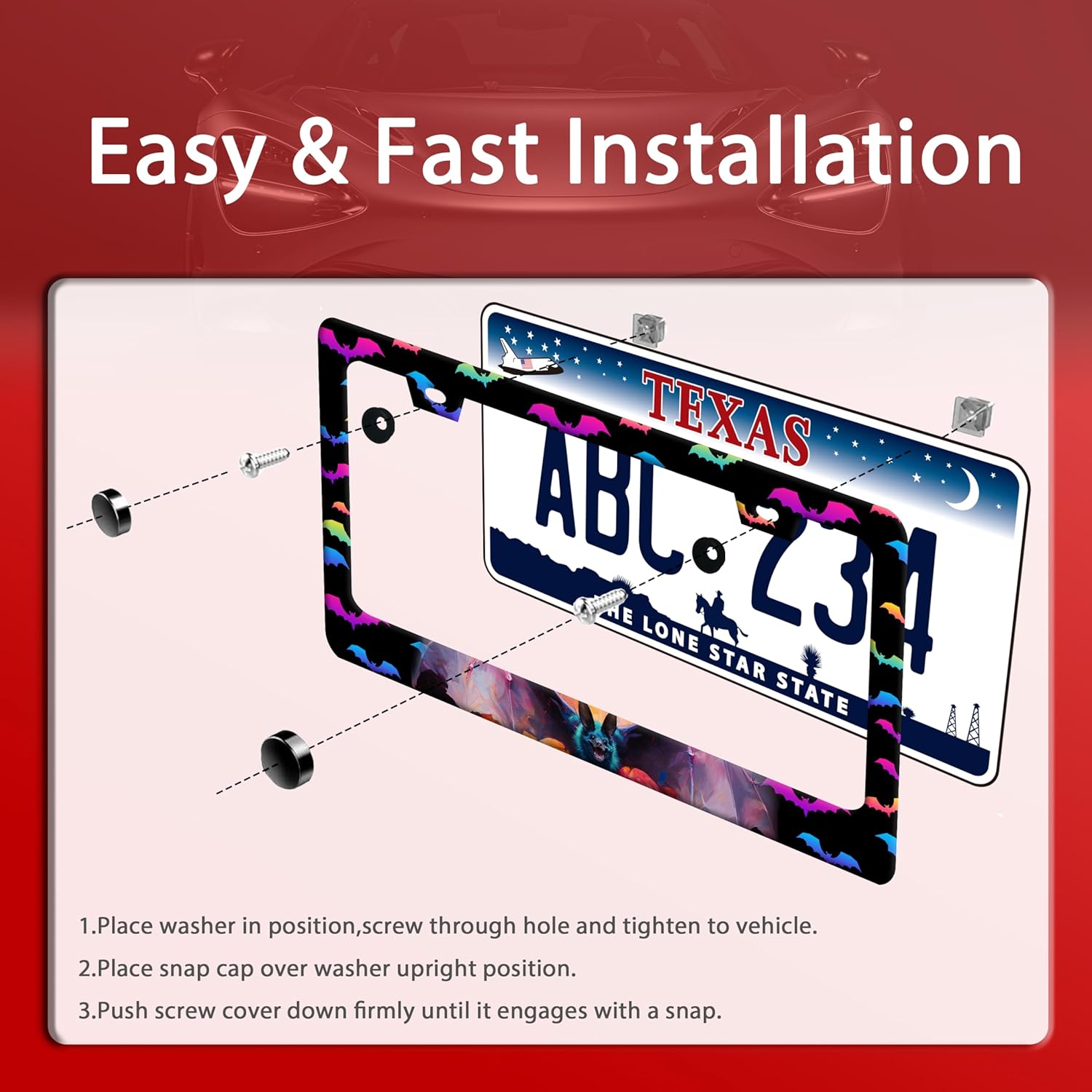 Bat License Plate Frame Funny Gothic License Plate Frames Stainless Steel Accessories Cars Decor with 2 Holes and Screws Reusable Fits Standard Us Ca Vehicles License Plate Holder 12.2 X 6 Inch