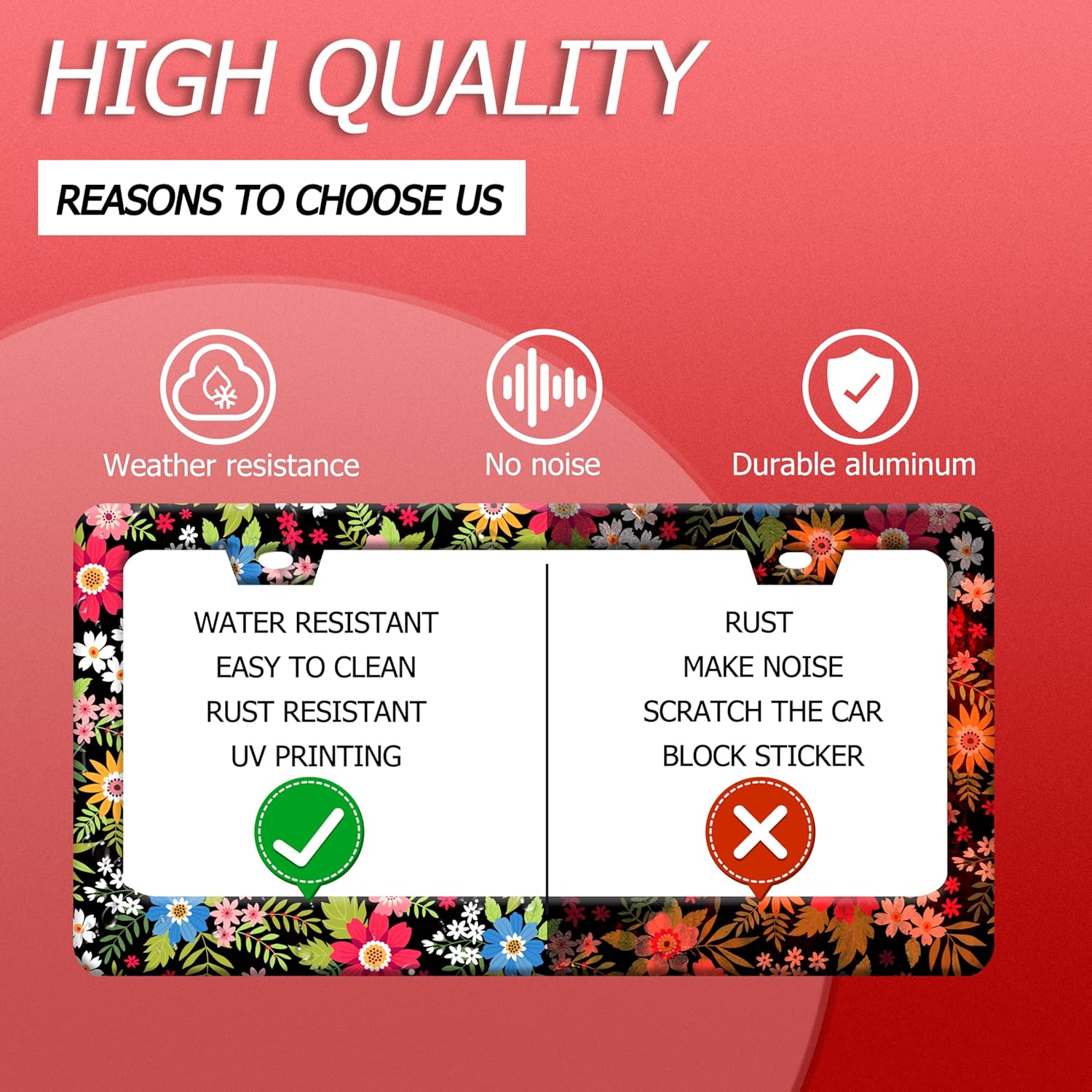 Folk Art Flowers License Plate Frame Funny Colorful License Plate Frames Stainless Steel Accessories Cars Decor with 2 Holes and Screws Fits Standard Us Ca Vehicles License Plate Holder 12.2 X 6 Inch