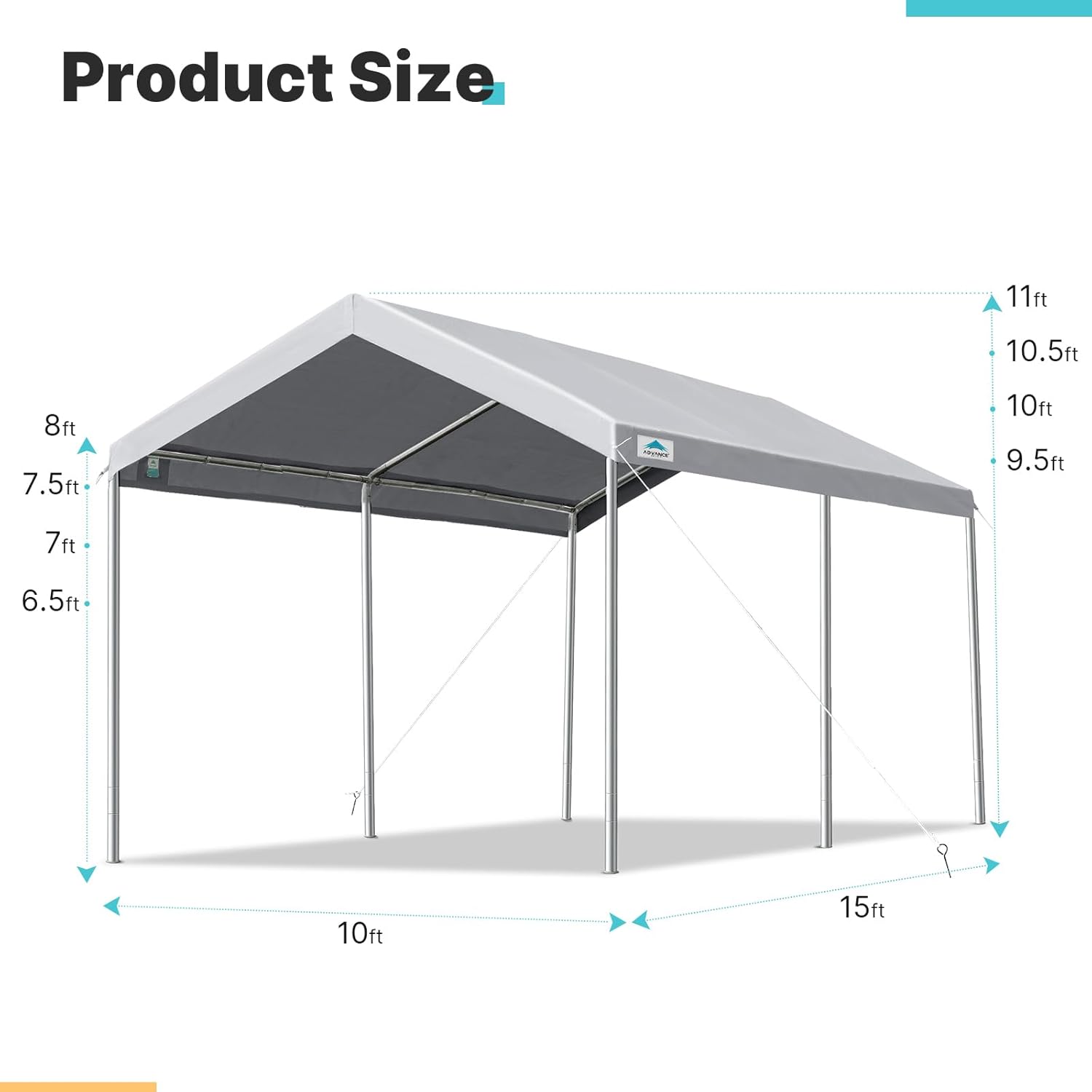 ADVANCE OUTDOOR Adjustable 10x15 ft Heavy Duty Carport Car Canopy Garage Boat Shelter Party Tent, Adjustable Height from 9.5 ft to 11 ft, Gray
