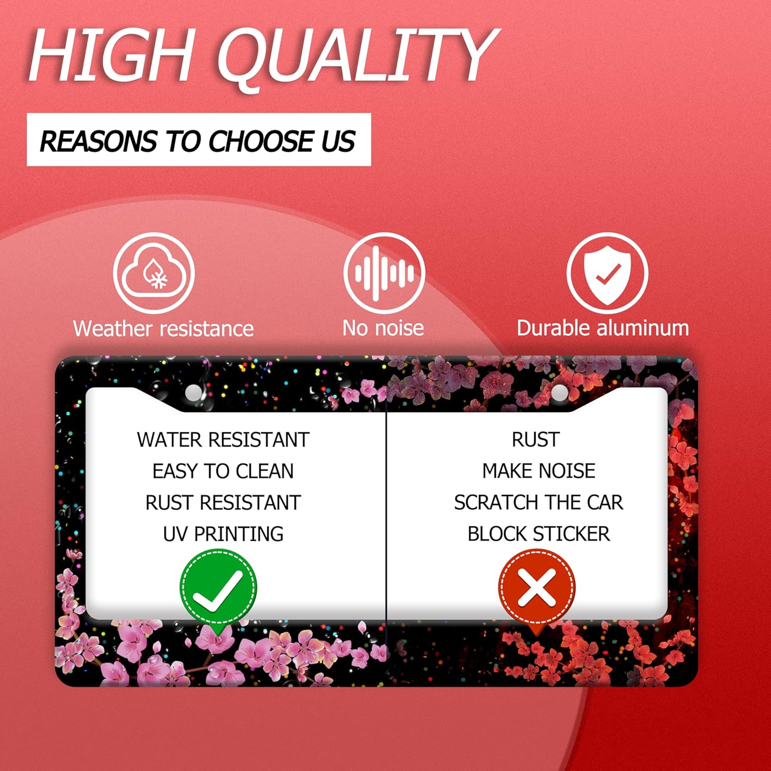 Cherry Blossom License Plate Frame Beautiful Flowers License Plate Frames Stainless Steel Accessories Cars Decor With 2 Holes And Screws Fits Standard Us Ca Vehicles License Plate Holder 12.2 X 6 Inch