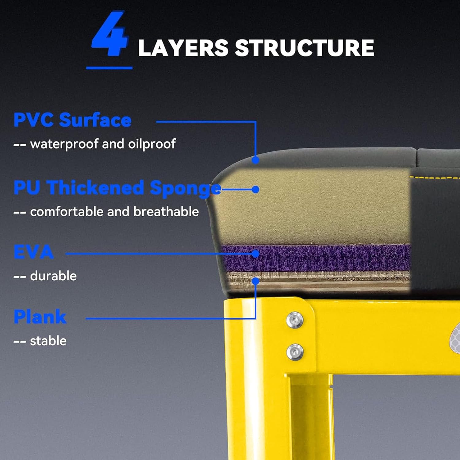 - ă4 layers StructureăThe creeper seat cushion is 3.35 inches thick and consists of FOUR layers structure. The first layer is a solid wooden plank, the second layer is a durable EVA, the third layer is a comfortable and breathable PU thickened sponge, and the fourth layer is a waterproof and oilproof PVC surface. Soft, Firm, and Comfortable