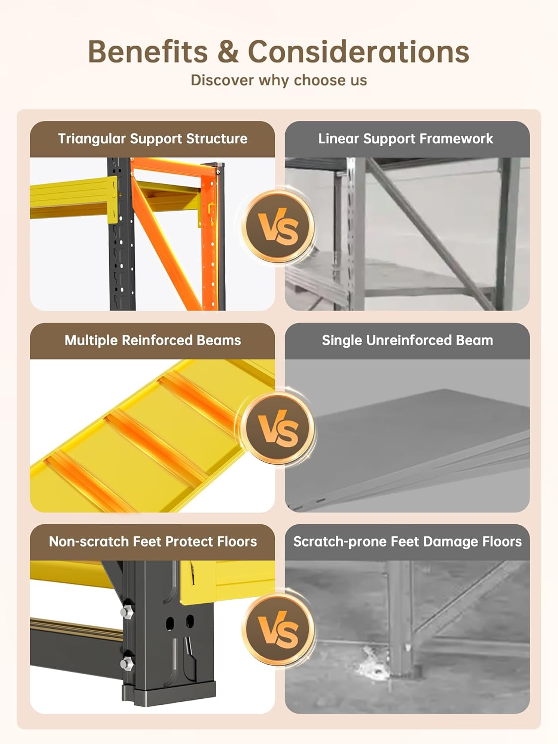 - [Stable Design for Safety & Durability]Reinforced crossbars and anti-slip rubber feet ensure stability on uneven floors.these metal storage shelves durability outperforms wooden shelves,ensure the safety and security of your stored items