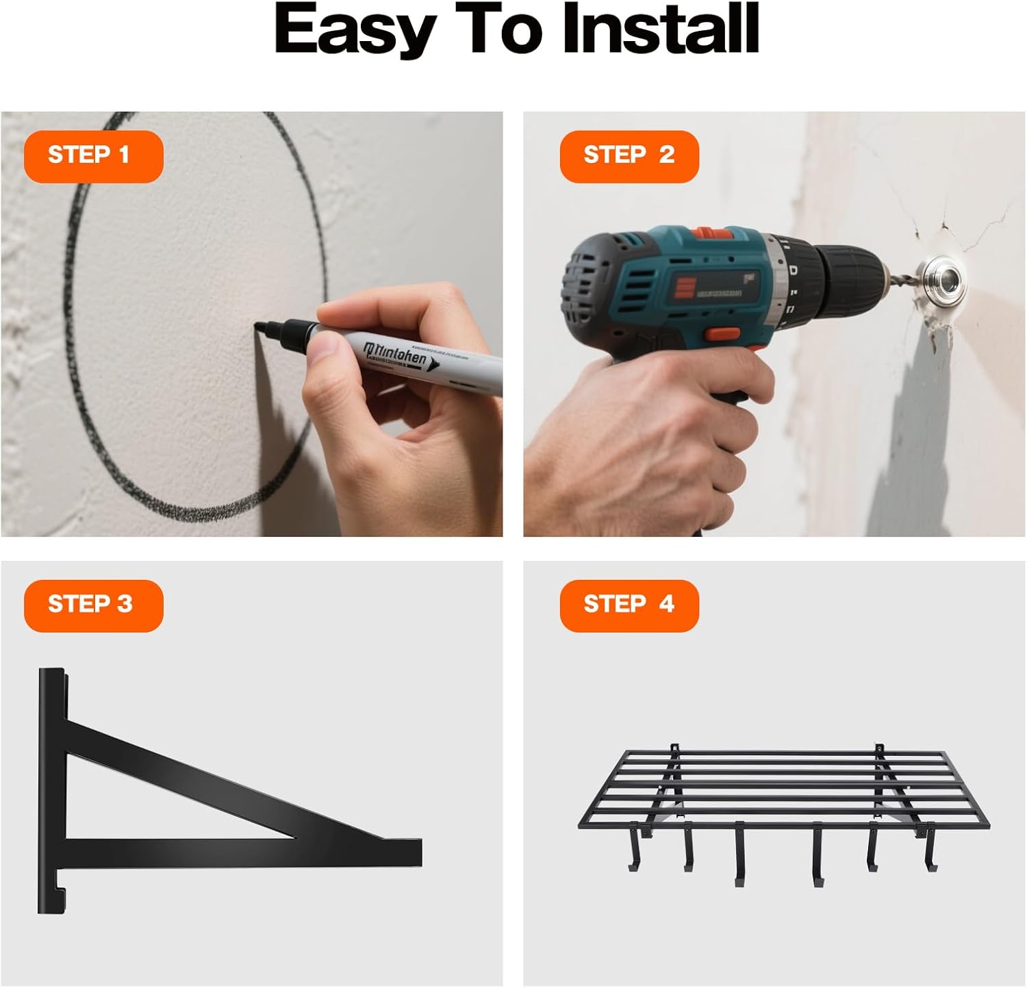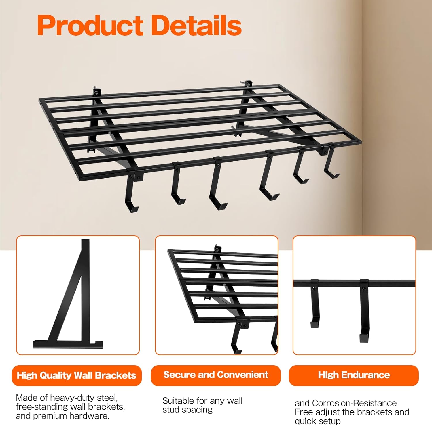 - Suitable for various wall structures: Use expansion anchors for secure mounting that garage Wall Shelving on both concrete wall and wooden wall,this can make sure that brackets is sold and stable.