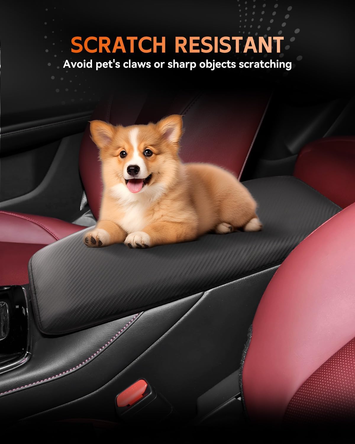 - [Excellent Scratch Resistance] The car center console mat is made of high quality PU microfiber leather, thick enough to keep out pet paws, dust and sticky fingers. The surface is waterproof, wear-resistant and durable, breathable, light weight and easy to wipe clean of dirt.
