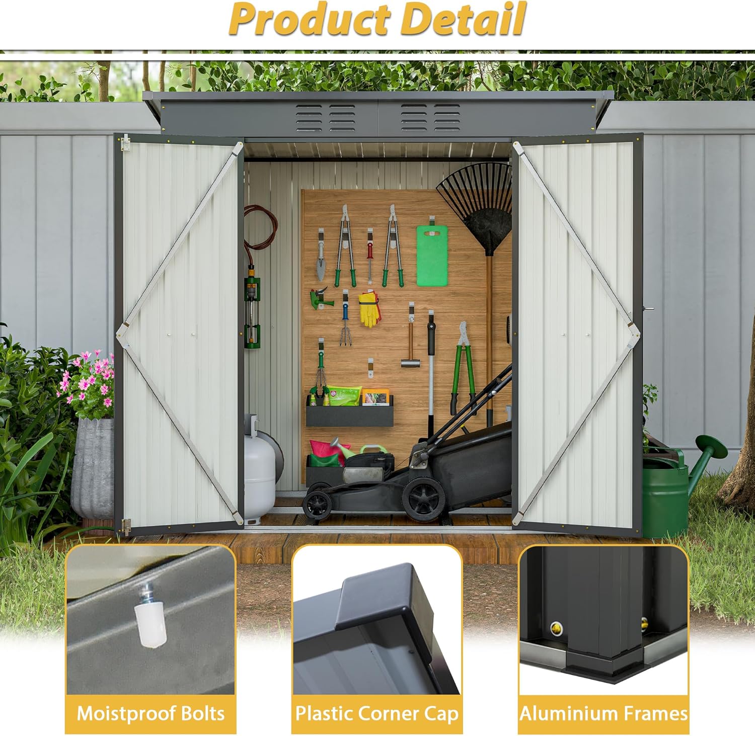 - 【Multi-Purpose Storage Solution】 This 6x4 FT metal shed is perfect for storing gardening tools, lawn equipment, or seasonal items. It also works as a pet shelter or garbage storage room to keep your yard neat and organized.