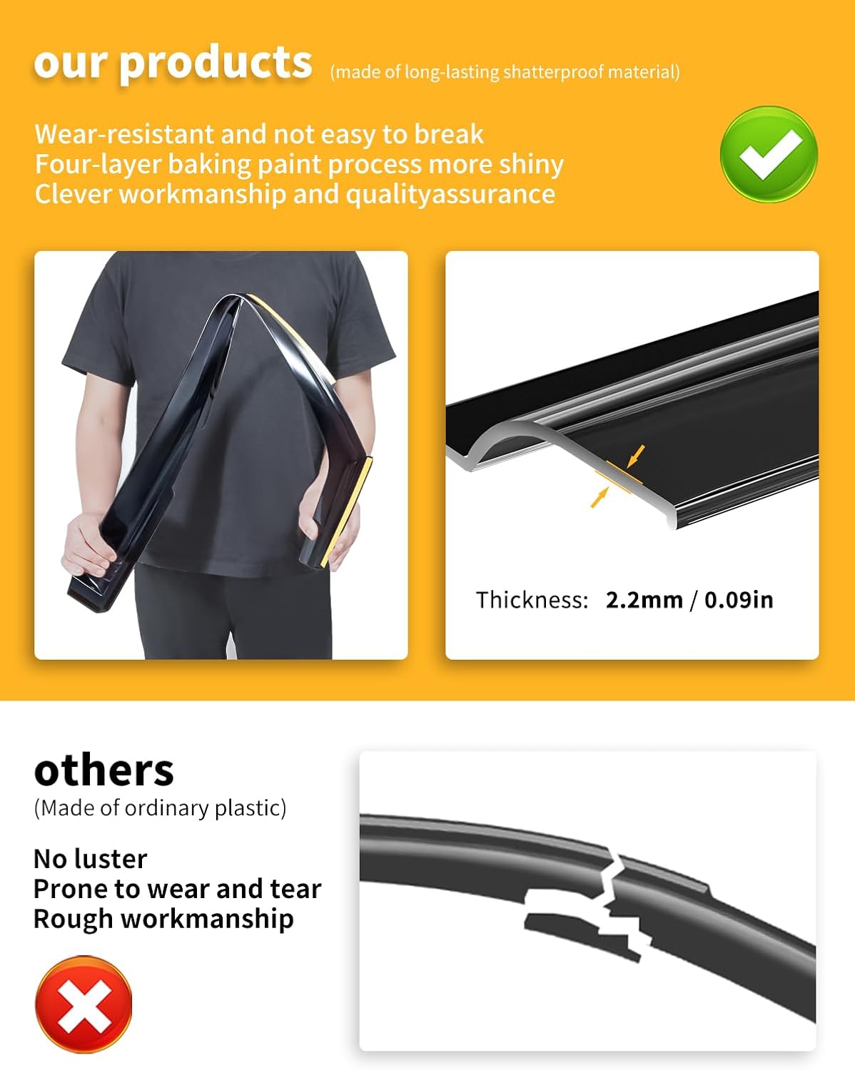 - ăEASY TO INSTALLăThere is no drilling or no tools required. If there is a situation where the window cannot be raised due to jamming, please manually adjust the position of the rain guards and close the window for 72 hours to stabilize the position. Reduce the problem of unable to close windows.