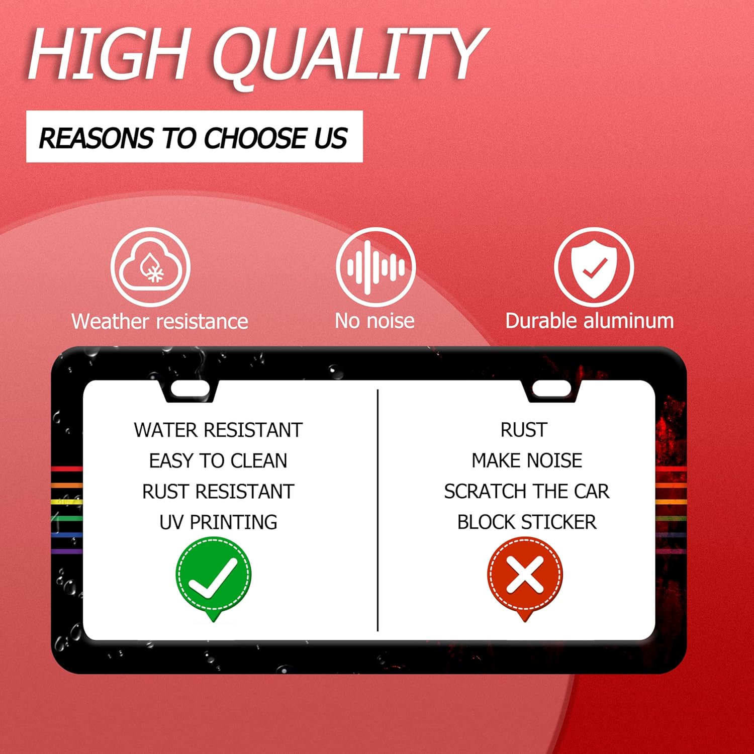 Gay Rainbow Line License Plate Frame Funny LGBT License Plate Frames Stainless Steel Accessories Cars Decor with 2 Holes and Screws Fits Standard Us Ca Vehicles License Plate Holder 12.2 X 6 Inch