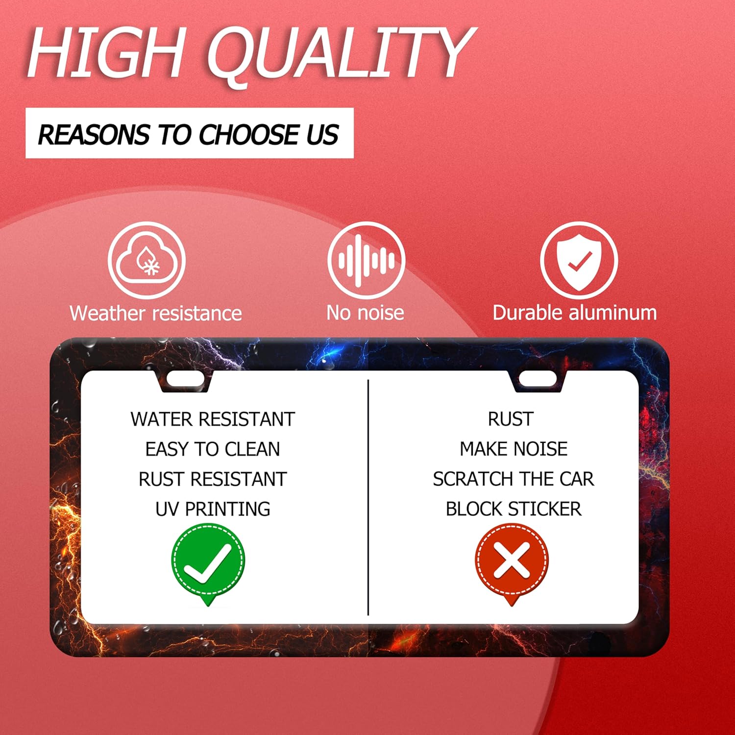Red and Blue Lightning License Plate Frame Funny License Plate Frames Stainless Steel Accessories Cars Decor with 2 Holes and Screws Fits Standard Us Ca Vehicles License Plate Holder 12.2 X 6 Inch
