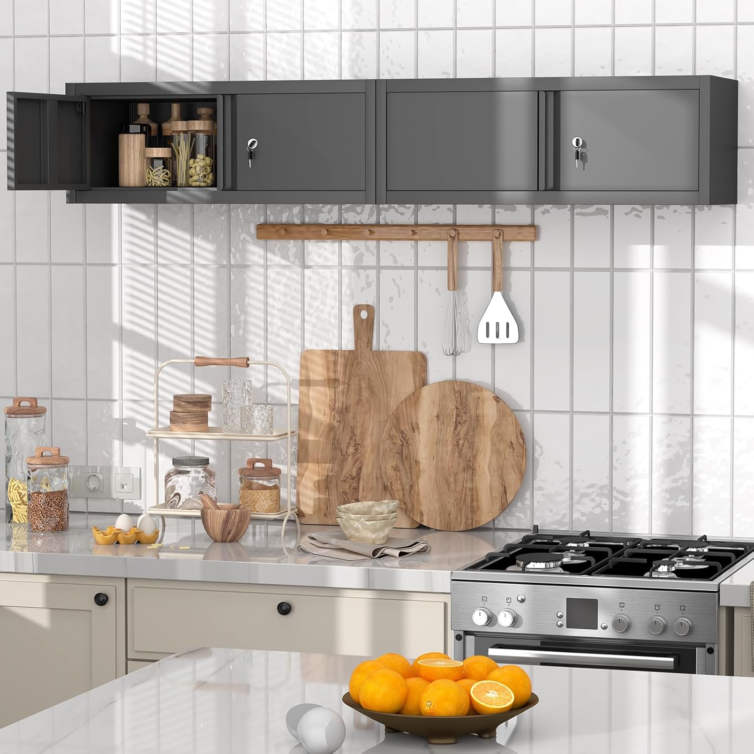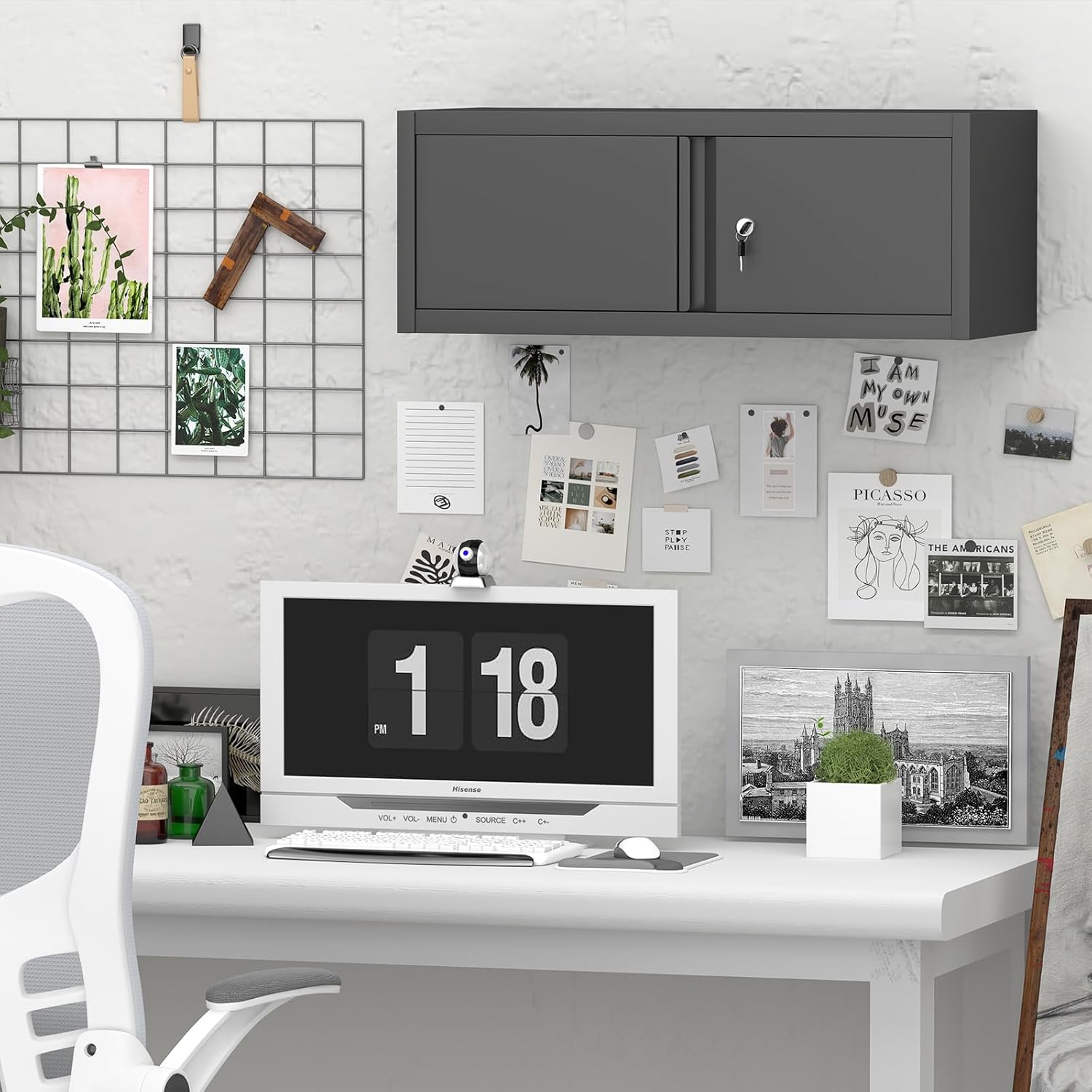 GREATMEET Metal Garage Storage Cabinets, Lockable Storage Cabinet with Doors, Wall Mount Cabinet Storage with Lock, Hanging Floating (Black, 13" H)