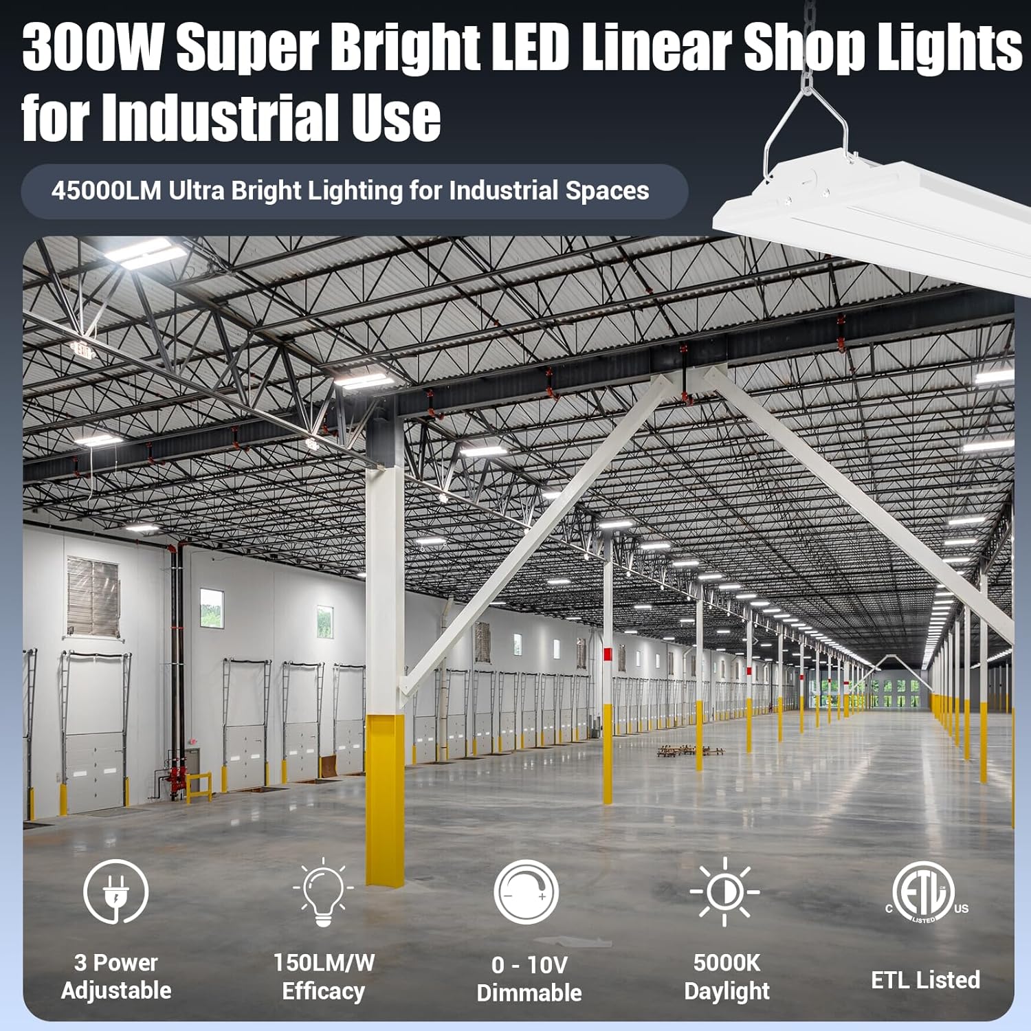 LED Linear Shop Lights 300W, 45000LM Led High Bay Lights 5000K Daylight 120-277V,Led Garage Light for Shop Workshop Store Commercial Supermarket Warehouse Basement Exhibition Room ETL-2Pack
