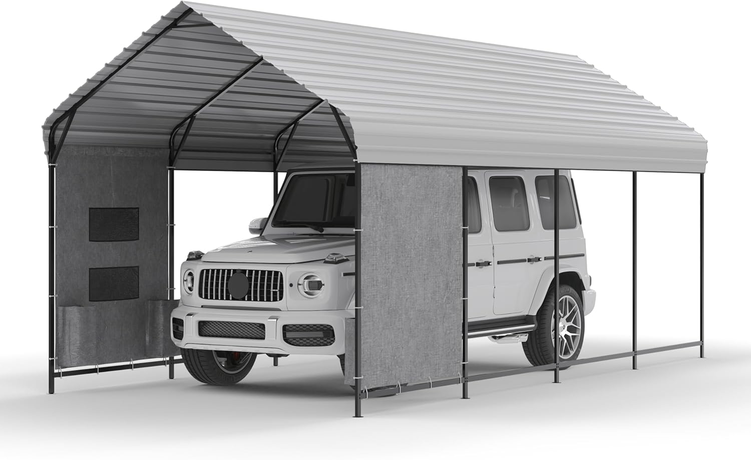 - Multi-Purpose Utility: More than just a shelter for your car, motorcycle, or ATV, this versatile structure adapts to your evolving outdoor needs. Its innovative design effortlessly converts into a garden shed—with sidewall fabric panels that let you create a secure space for gardening tools, outdoor equipment, or extra storage—all included in one smart package