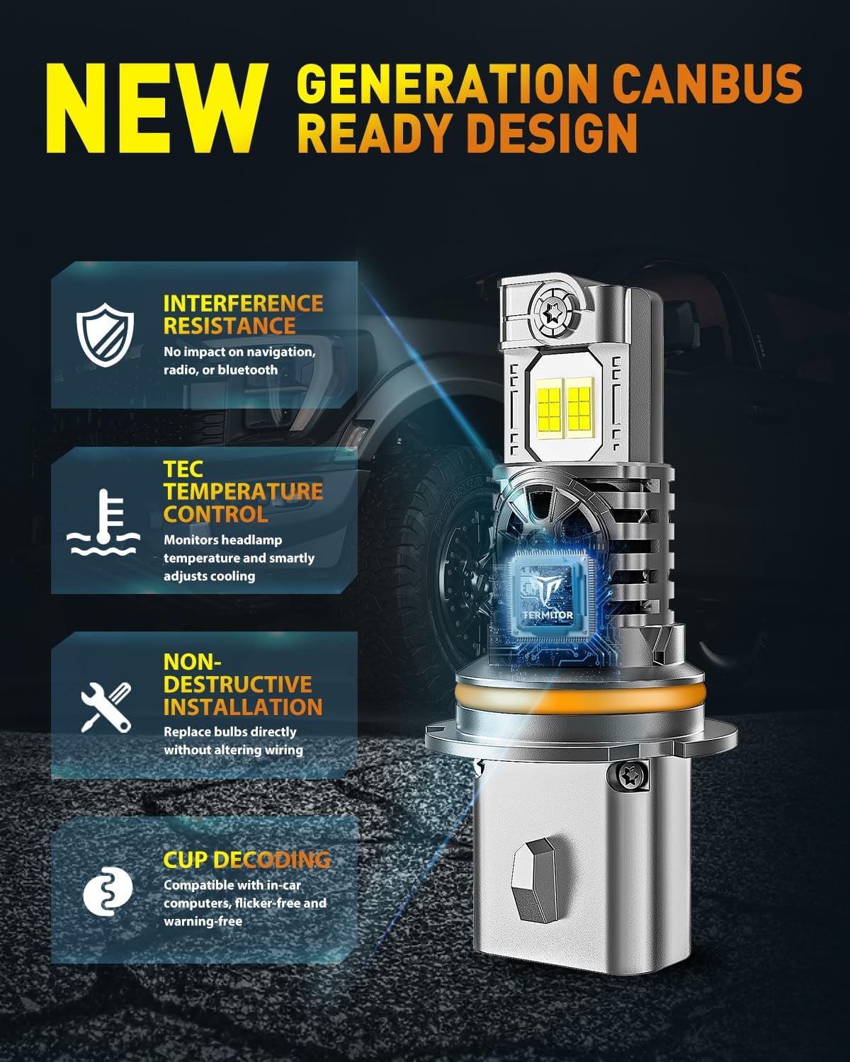 - 【NEW GENERATION CANBUS SYSTEM】Built-in more sophisticated CBNBUS driver, which is further optimized for some sensitive models, giving them a higher level of compatibility. In addition, we control the power of the lights between 50W and 65W, perfectly replacing the 55W and 60W halogen bulbs, eliminating the problem of flickering bulbs or triggering warnings on the dashboard.