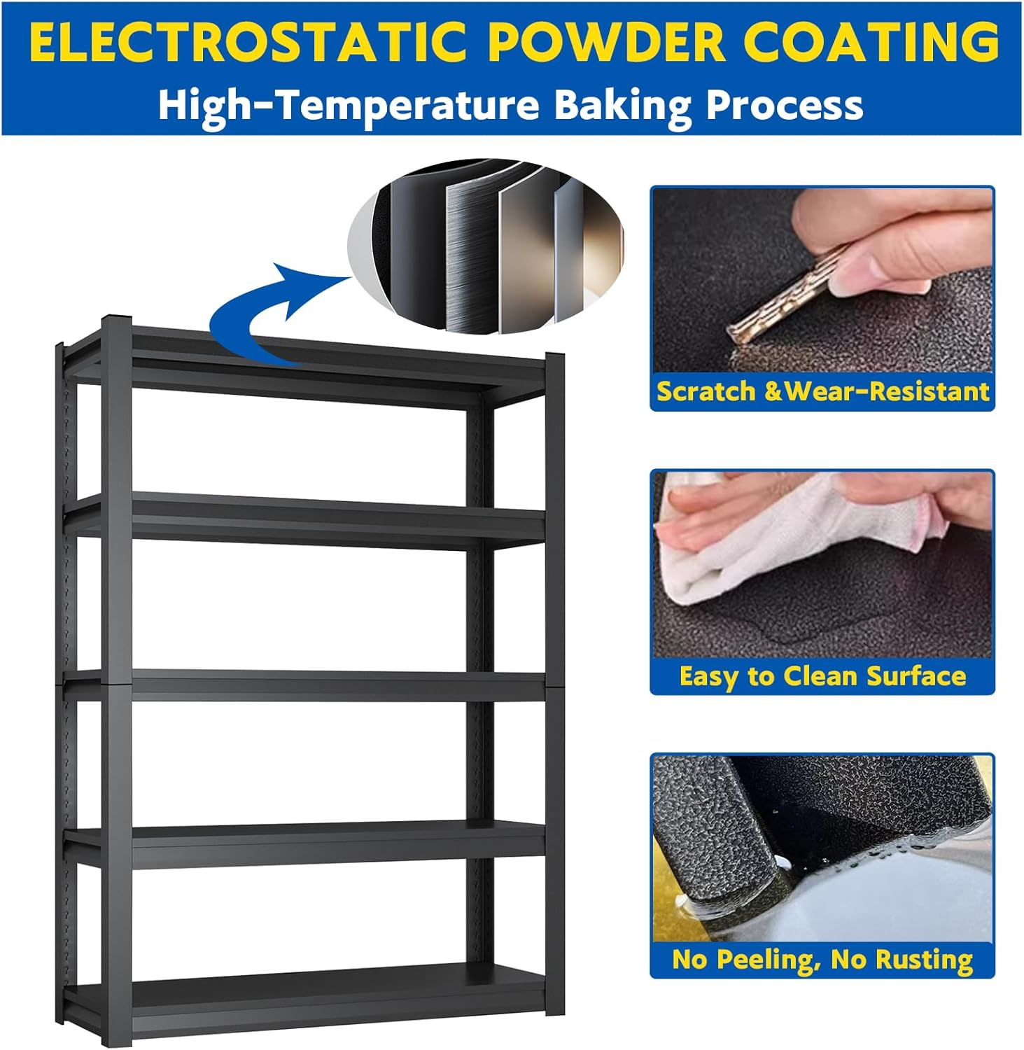 - ăRust-Resistant, Scratch-Proof & Built to LastăCoated with a high-temperature electrostatic powder finish, the surface is highly resistant to rust, scratches, and everyday wear and tear. This protective layer enhances durability, ensuring your garage storage shelves heavy duty remains in top condition even in humid or demanding environments.