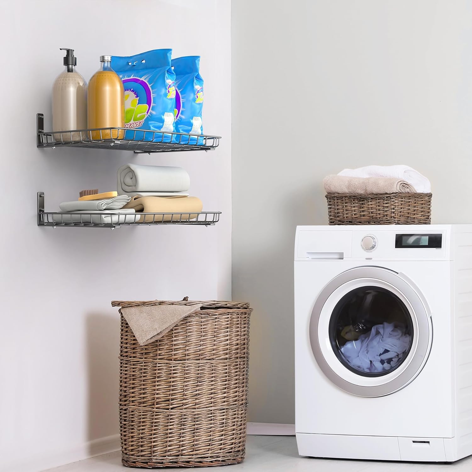 - Sturdy Metal Shelves: Made from high-quality steel with a powder-coated finish, these garage wall shelves hold up to 60 lbs per shelf