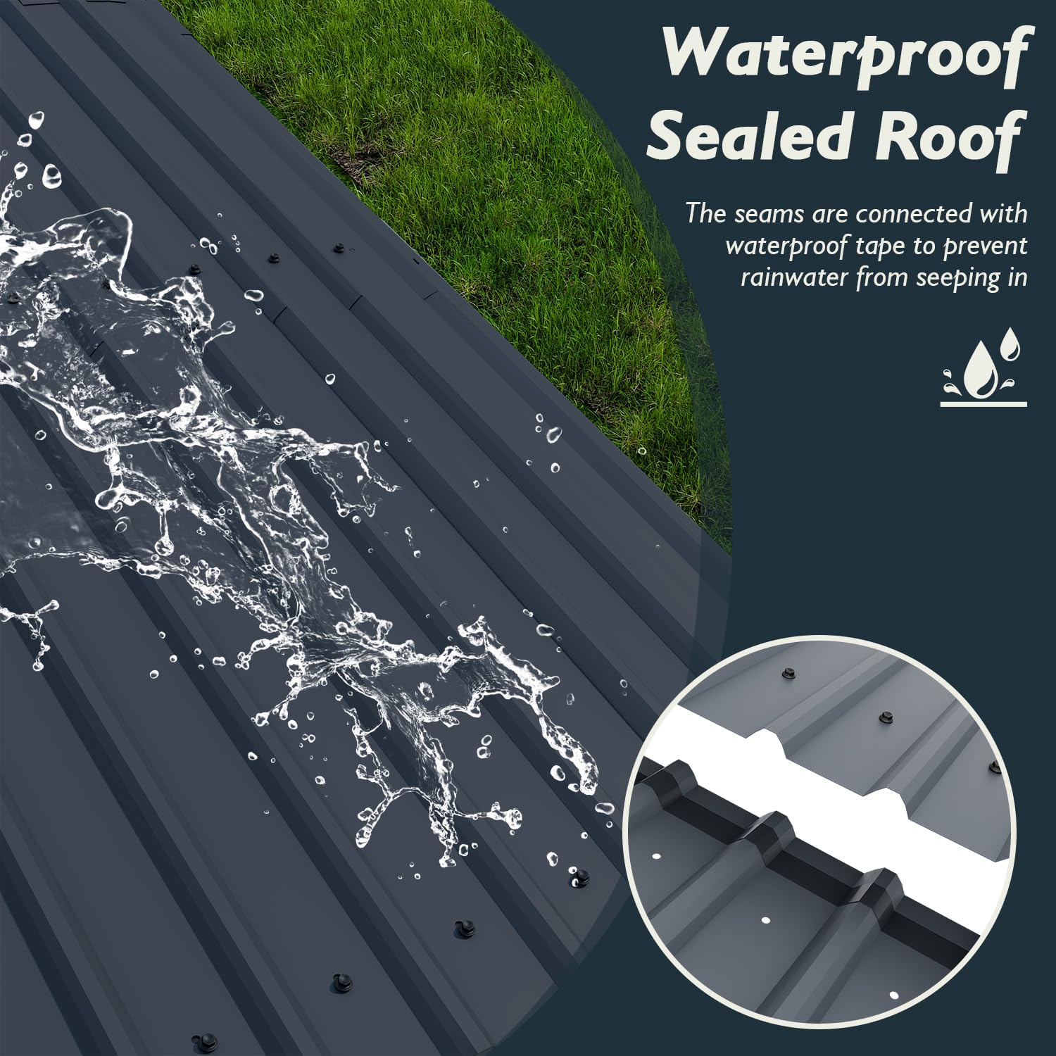 - STABLE CARPORT DESIGN: The roof of the outdoor carport is reinforced with connecting pipes inside and on the sides, and the triangular structure gives the whole better stability. The top adopts a special waterproof design with rainproof tape to provide excellent leak protection on rainy days. The edge of the roof is equipped with soft-edged rubber strips, which adds an extra layer of safety protection to the carport.