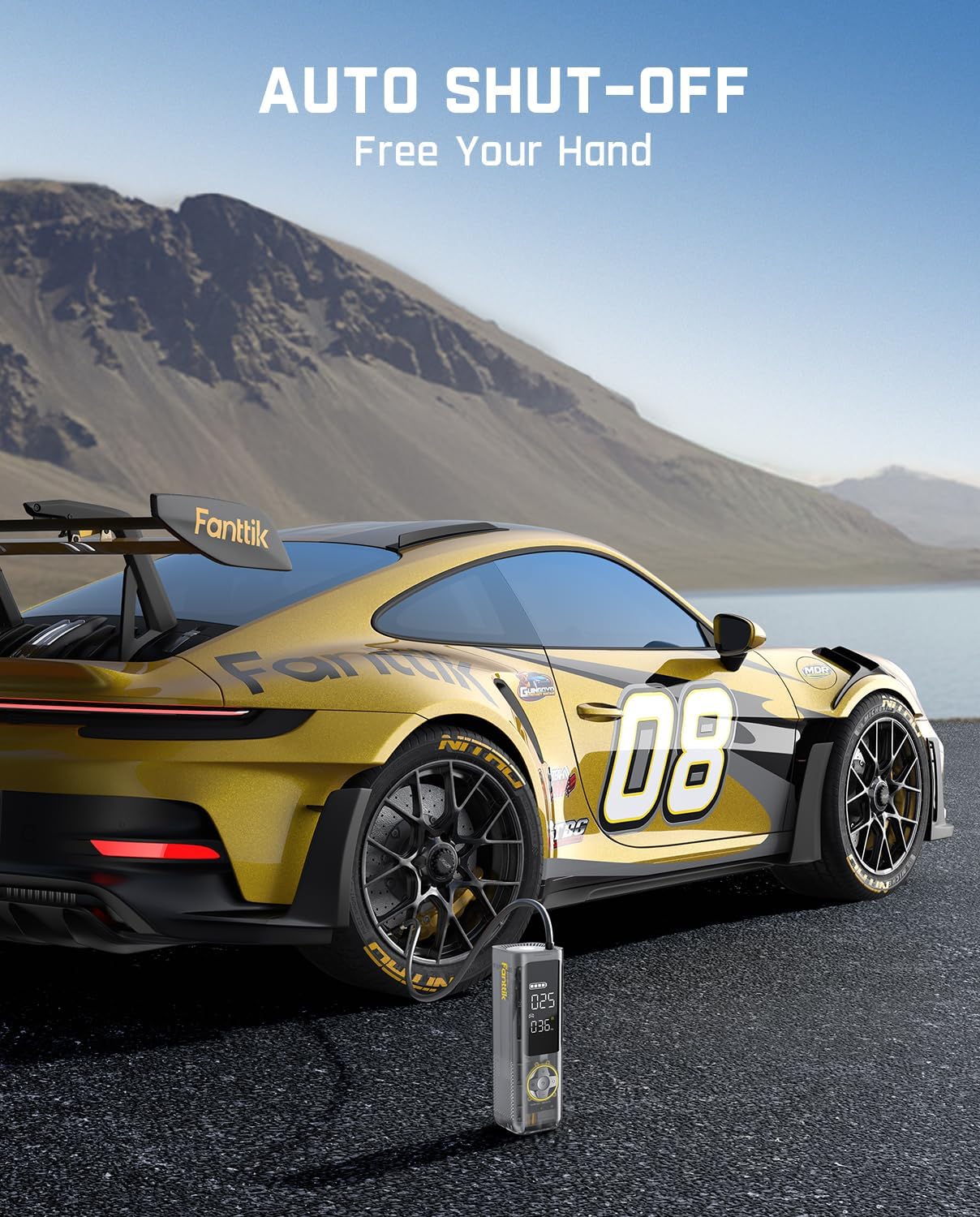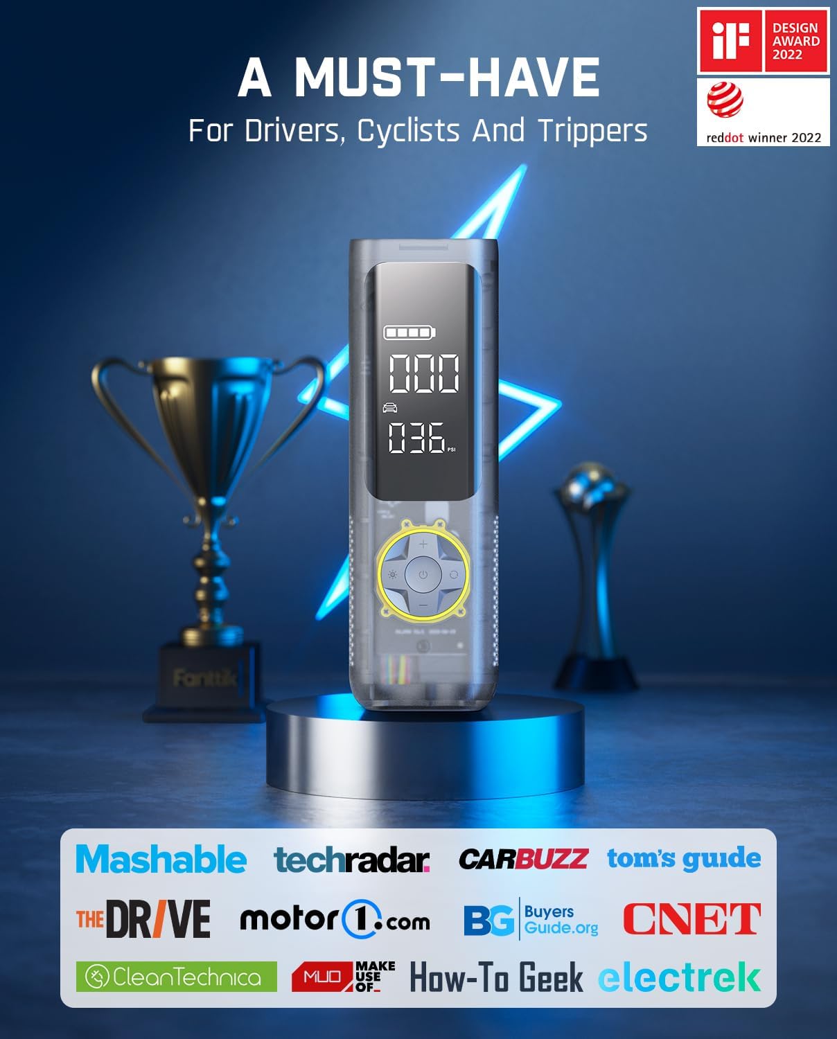 Fanttik X8 APEX Tire Inflator Portable Air Compressor, 1 Min Fast Inflation, 150PSI Cordless Tire Inflator with LED Dual Screen, Suitable for Car, Bike, Motorcycle, Up to 26.3″ Tires, Mechanical Gray