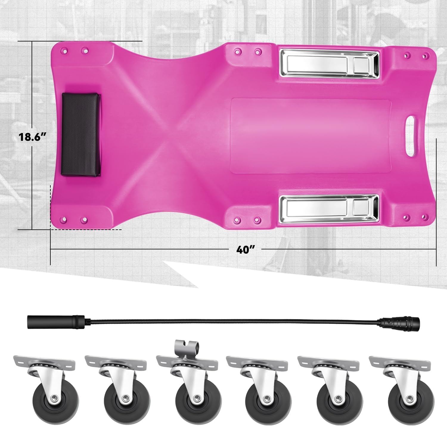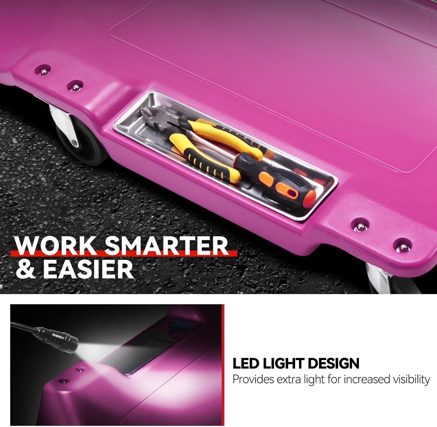 Auto Dynasty 40 Inches Mechanic Creeper, Automotive Garage Repair Low Profile Under Car Rolling Creeper with LED Light and Padded Headrest, Plastic, Purple