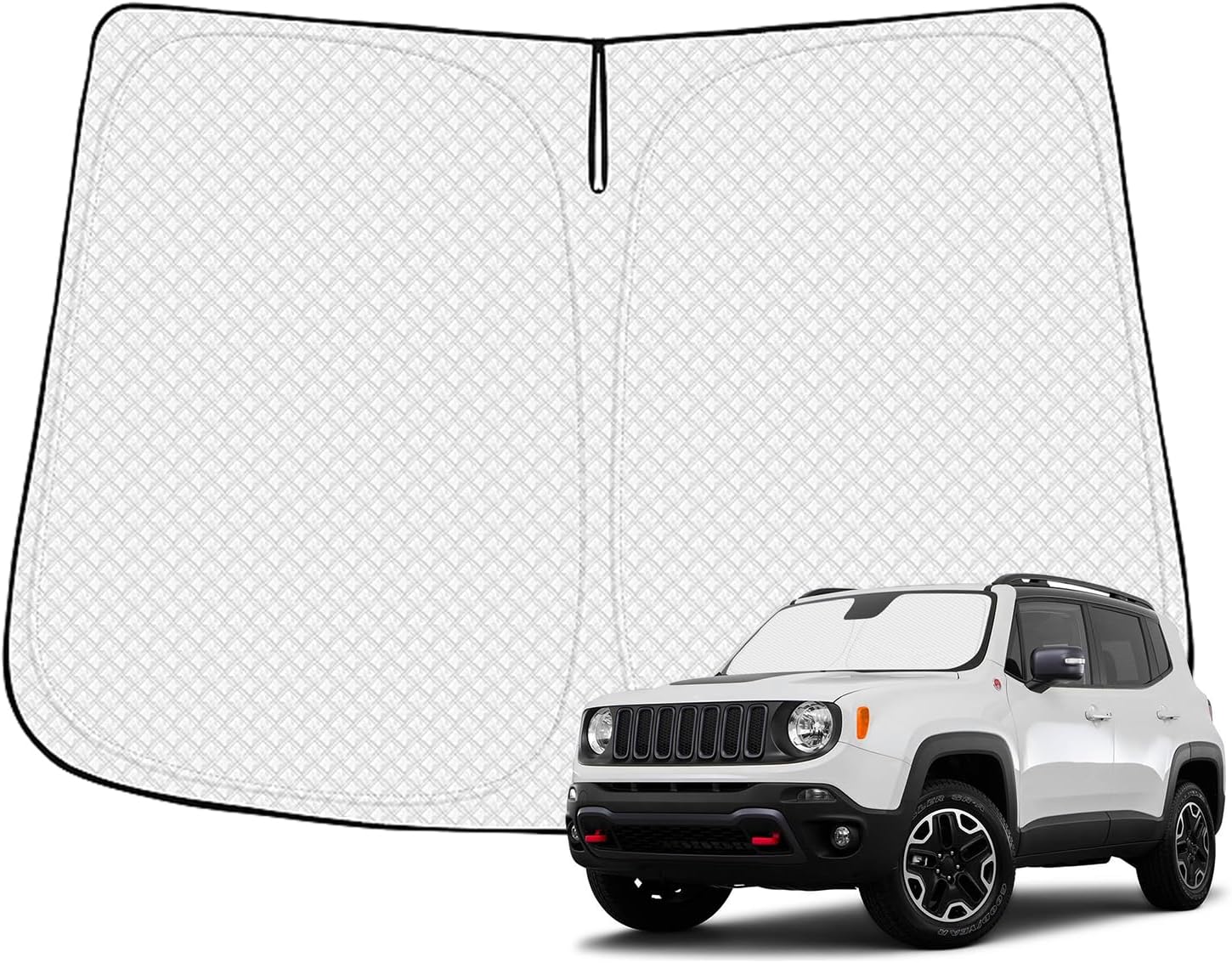 - 【Perfect Fit】Canvcle windshield sun shield fits perfectly for Jeep Renegade 2015 2016 2017 2018 2019 2020 2021 2022 2023 2024 2025 front windshield without any gaps, don't worry about the size. Works well in keeping your car cooler, will be a must-have accessory for your car!