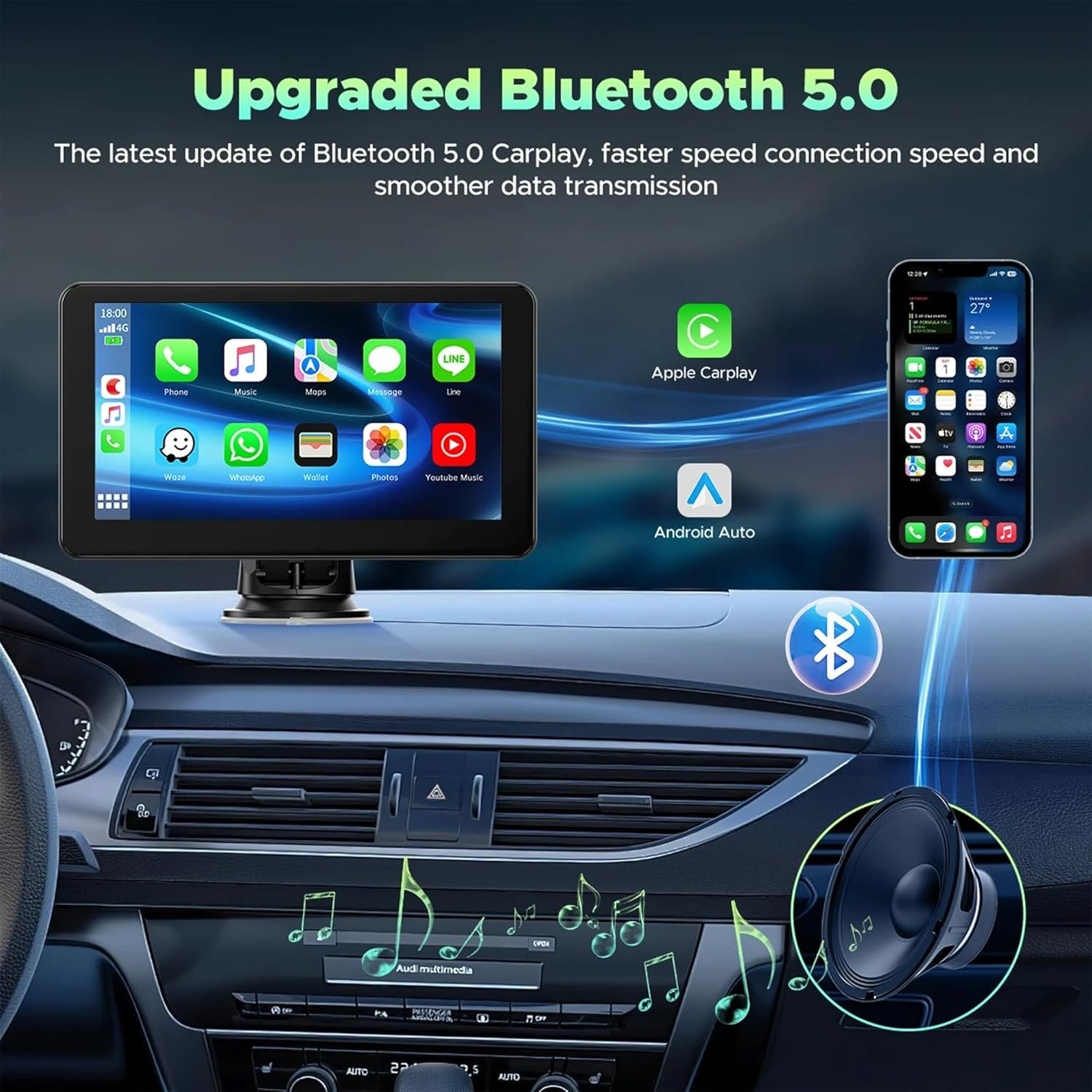 - ă Phone Mirror Link ă: The 7-inch CarPlay screen for cars supports iOS and Android mirroring. Equipped with upgraded WiFi connection and USB wired connection. Easily sync YouTube, TIKTOK videos, videos GPSďź Enjoy high-definition large screen video experience. Make your trip enjoyable