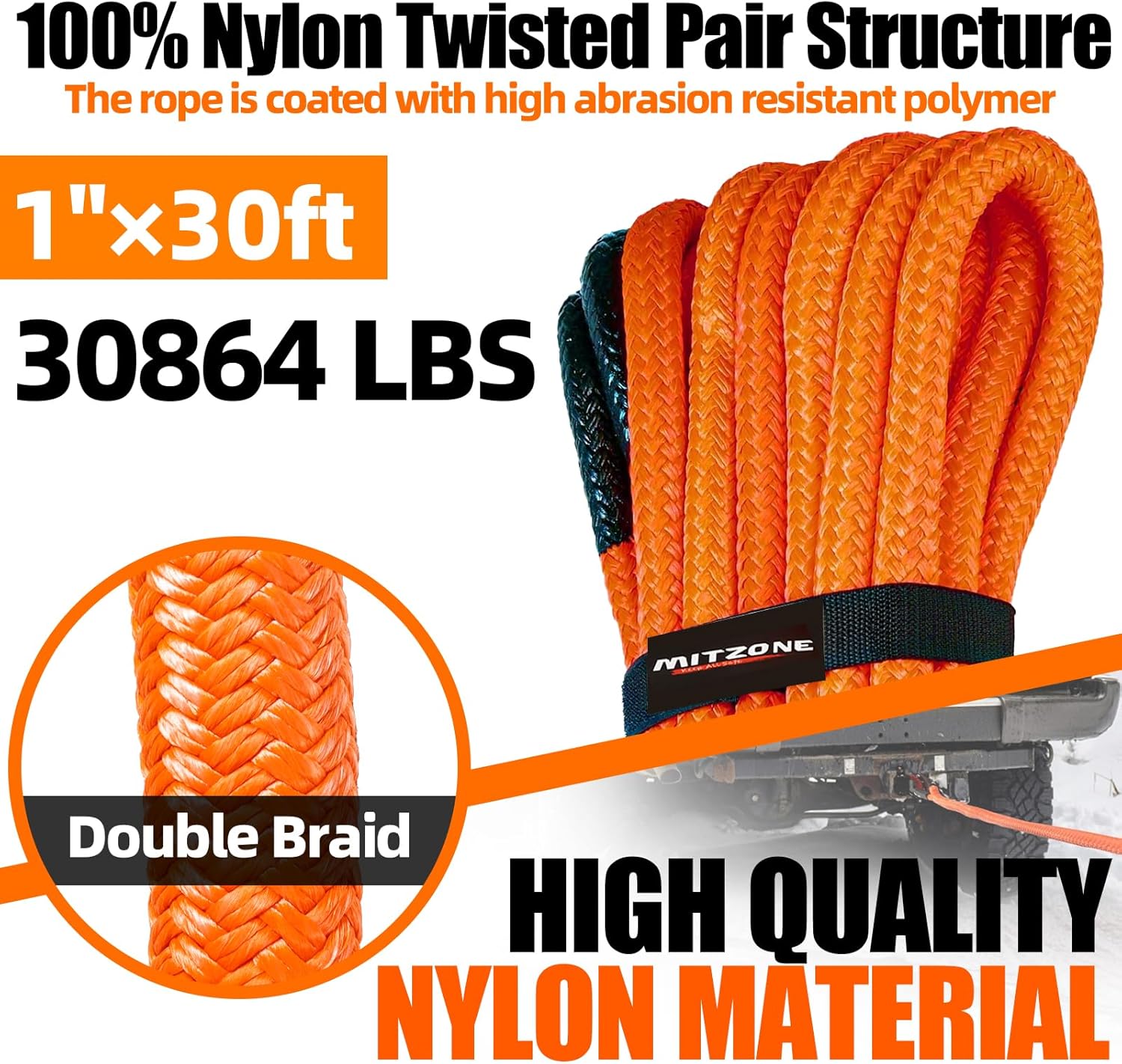 MITZONE Recovery Tow Strap,Heavy Duty Tow Strap Recovery Kit,Car Vehicle Heavy Duty Recovery Rope 37478 lbs for Diesel Trucks,SUV, ATV,Backhoe, Excavators,Ring Shackles,Storage Bag