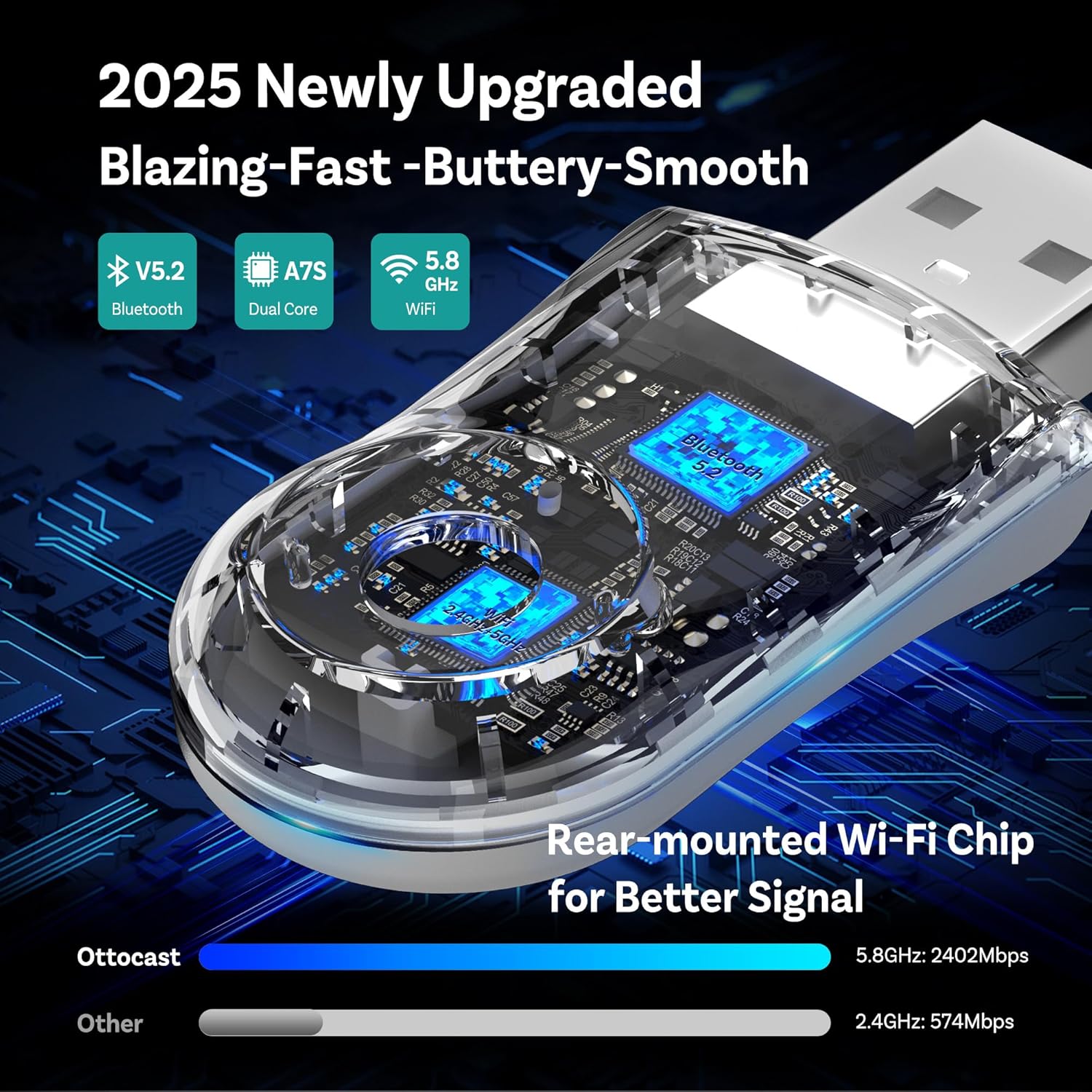 OTTOCAST Wireless Carplay Adapter 2025 for Apple iPhone, Convert Wired to Wireless Car Play for Older Cars Mini USB Design Plug & Play, Multi-User Seamless Connection for iOS 10+/ Android Auto (White)