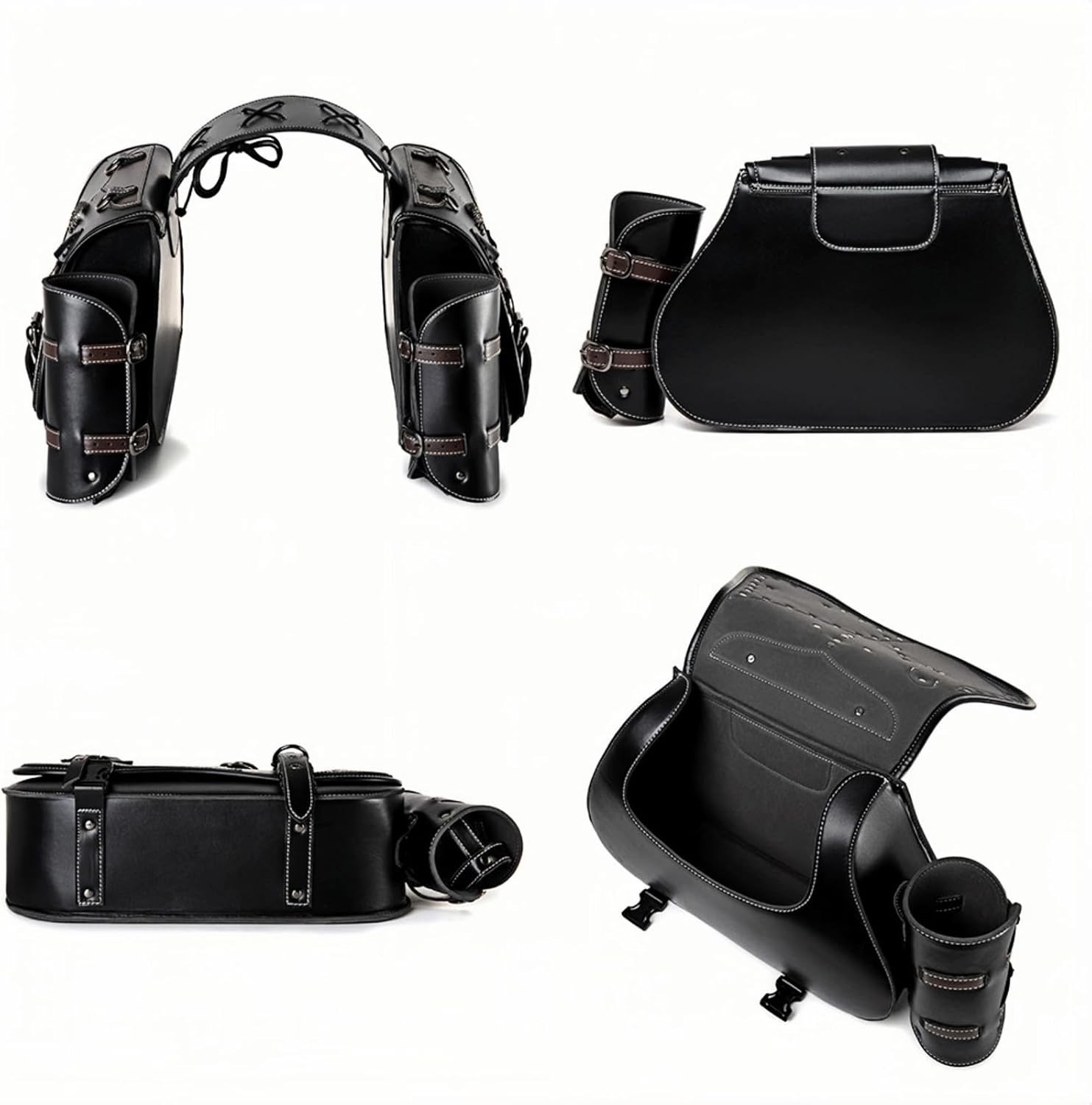 Motorcycle Saddlebags, 30L Leather Waterproof Side Saddle Bags with Cup Holder, Universal Powersports Saddlebags for Harley Davidson Sportster Dyna Softail Honda Shadow Rebel Yamaha Kawasaki Vulcan