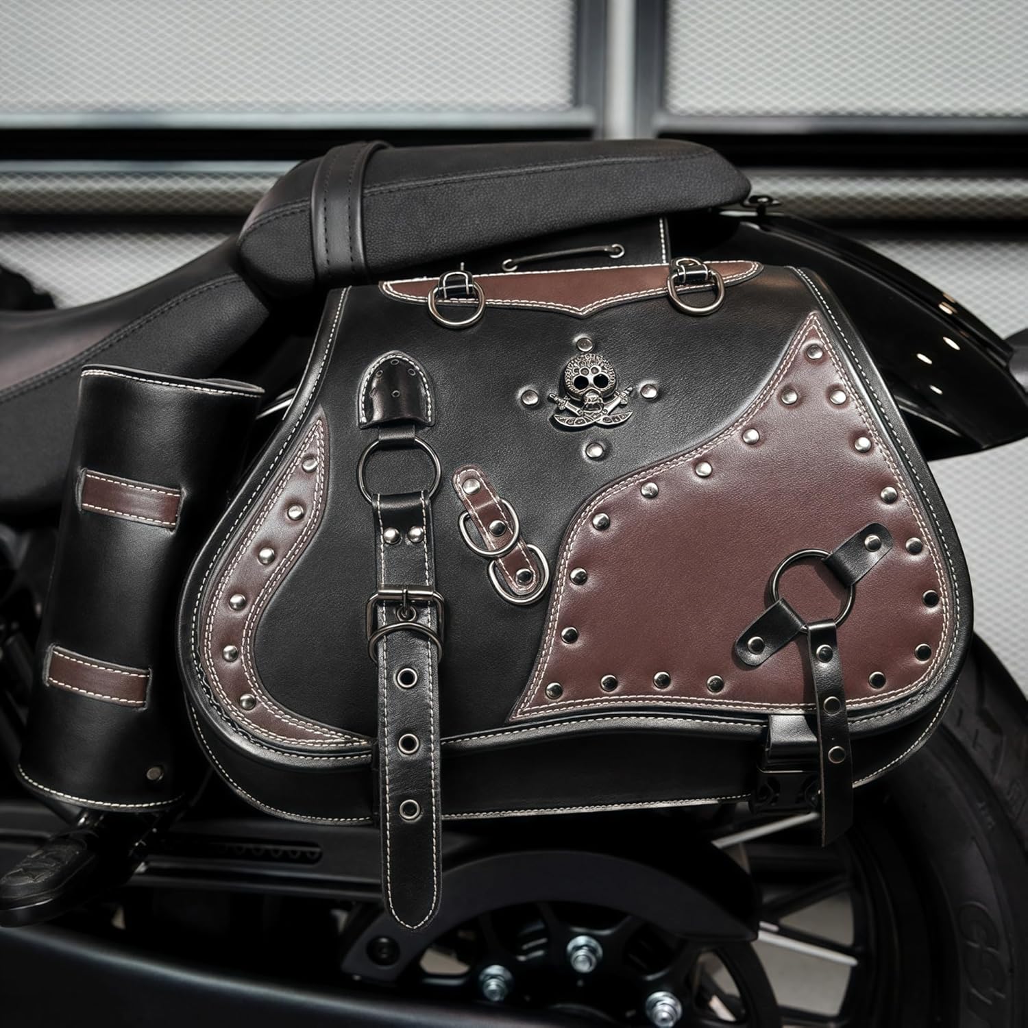 - ★【Premium PU Leather & Exquisite Metal Locks and Trim】-- Made of selected PU leather and high-quality polished hardware are made of exquisite and smooth edges of the bag, with exquisite paint spraying process, and the metal parts are polished smooth and bright. Compared with ordinary PVC leather saddle bags, it is not only more delicate and advanced, but also more durable, waterproof and scratch-resistant. The unique rivet streamline design exudes an elegant retro punk flavor, making your ride eye-catching and luxurious.
