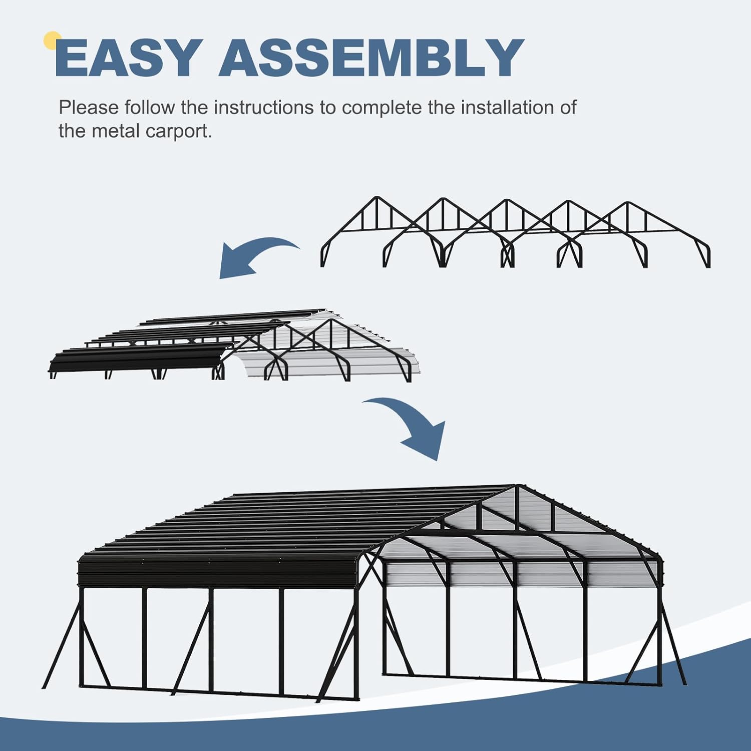 - 【Warranty】 The carport garage set arrives in 4 boxes and may not arrive at the same time. Please wait patiently. All necessary hardware and easy to understand instructions are included in the packages. Please install according to instructions step by step. If there are any problems when you receive the carport or future use, our team will serve you asap.
